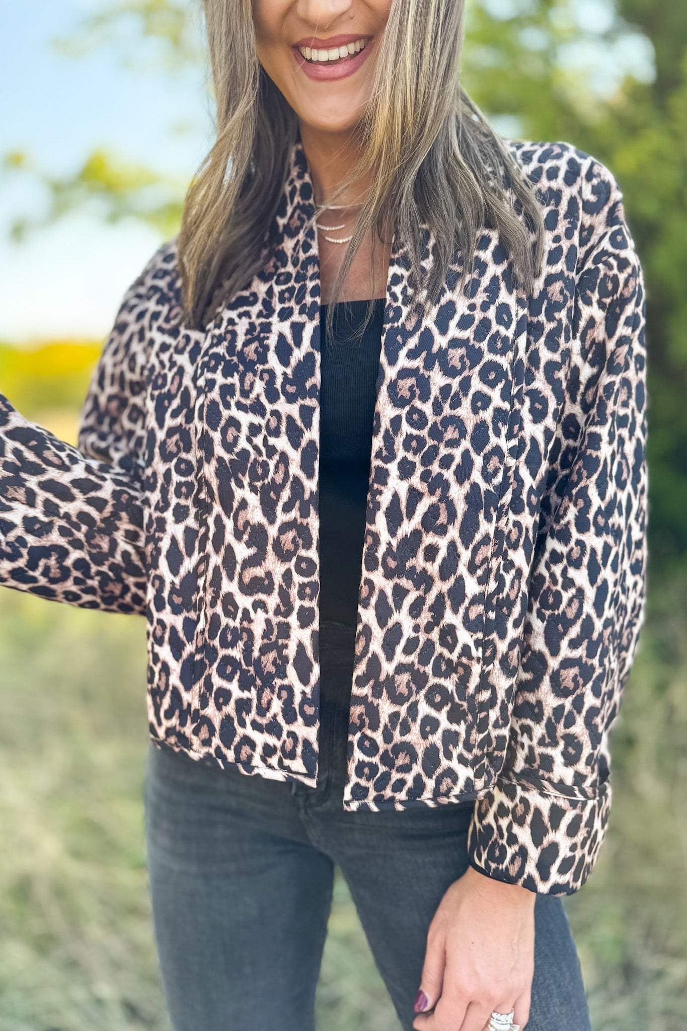 Make a bold statement with the Wren Quilted Jacket in Animal by SSYS The Label. This chic jacket combines cozy comfort with fierce style, featuring an allover animal print that adds the perfect touch of edge to any outfit. The quilted texture provides both warmth and structure, making it a standout layering piece for cooler days.