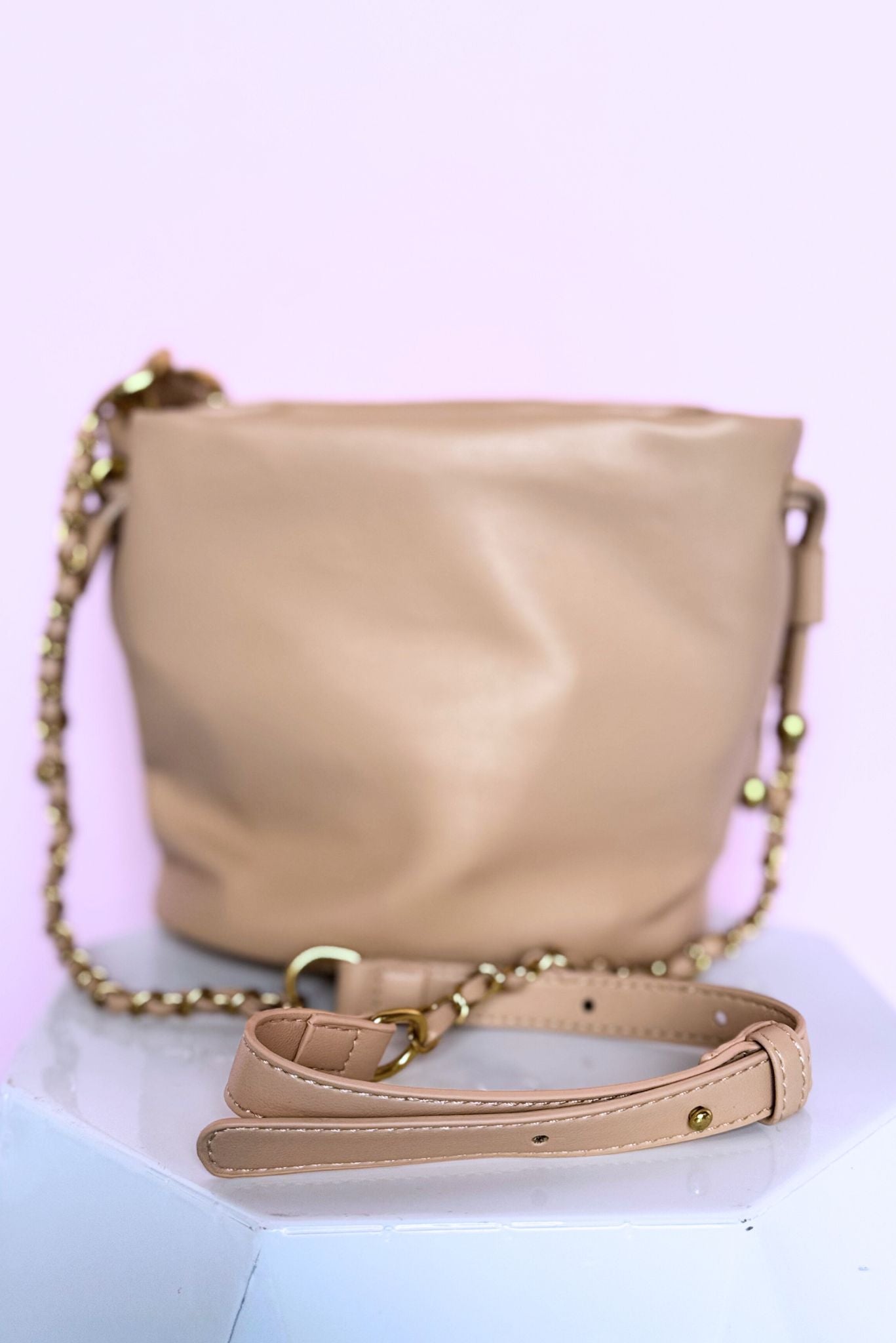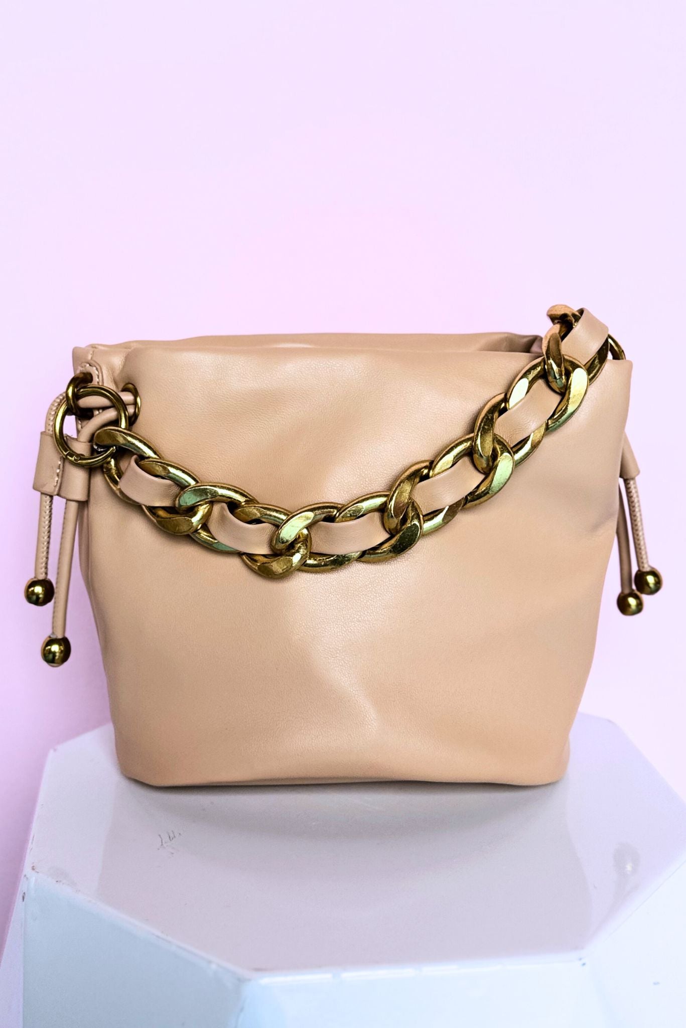 Add a touch of trendy class to your outfit with our Beige Chainlink Handle Purse. Its sleek design and chainlink handle makes it stand out from the crowd. Perfect for fashion-forward individuals!