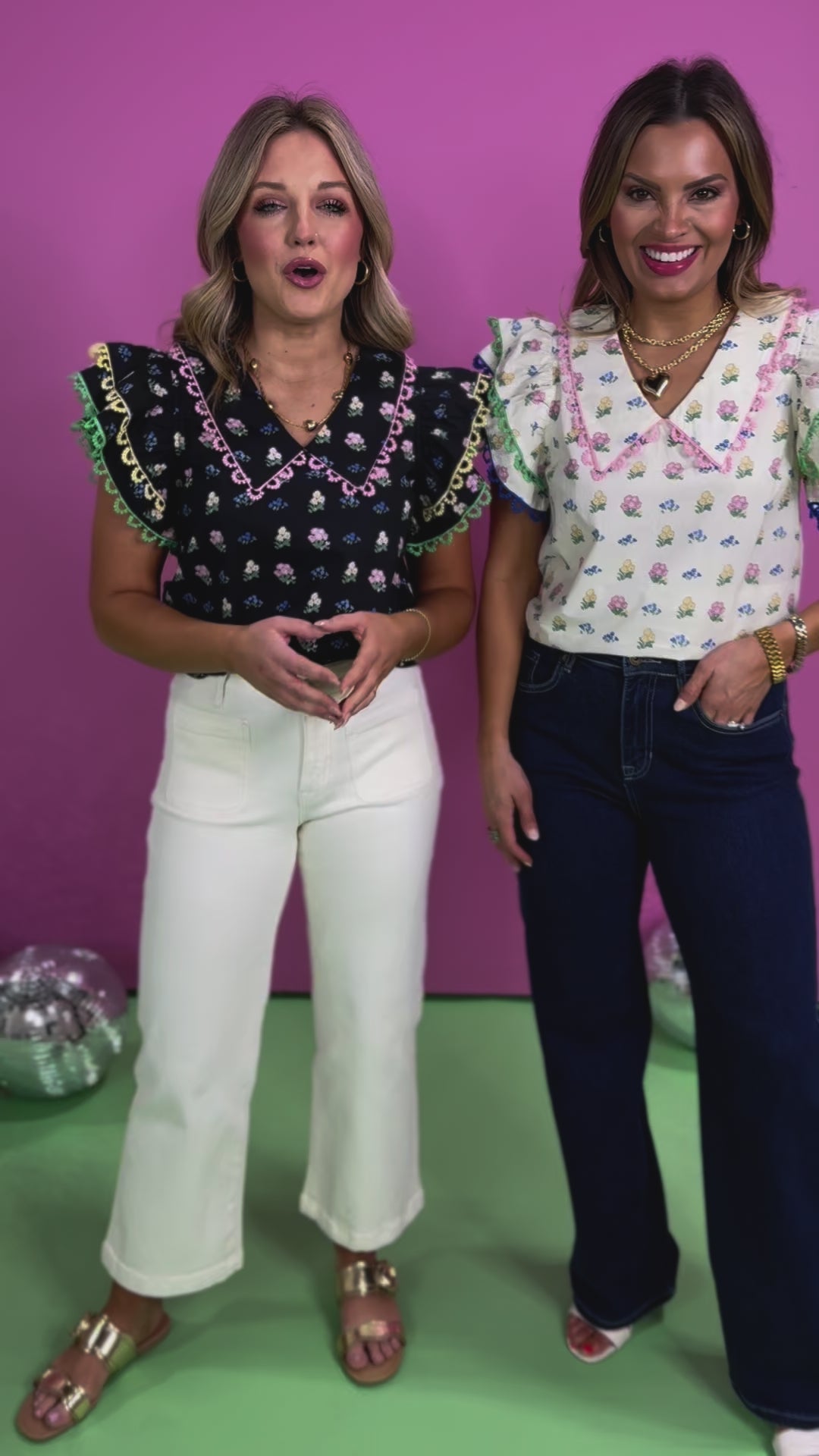 Embrace your classy chic side with our Black Floral Print Crochet Scallop Trim Top. This adorable top features a unique crochet scallop trim, adding a fun and whimsy touch to any outfit. Perfect for any occasion, you'll love adding this piece to your wardrobe. Style with denim or shorts for an effortless look! Need styling inspiration? Shop our BOTTOMS and SHOES to build your ensemble!