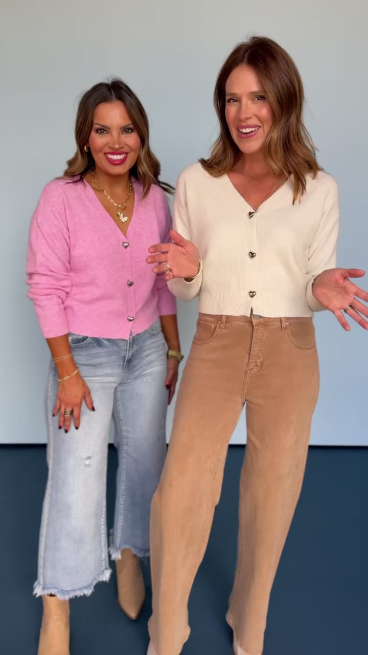 Get ready to fall head over heels for this Black Heart Button Cardigan! Made with super soft material, this cozy cardigan features heart-shaped buttons that add a touch of whimsy charm to your wardrobe. Perfect for layering or wearing as a statement piece, this cardigan will keep you stylish and snug all season long! Need styling inspiration? Shop our to build your adorable look!