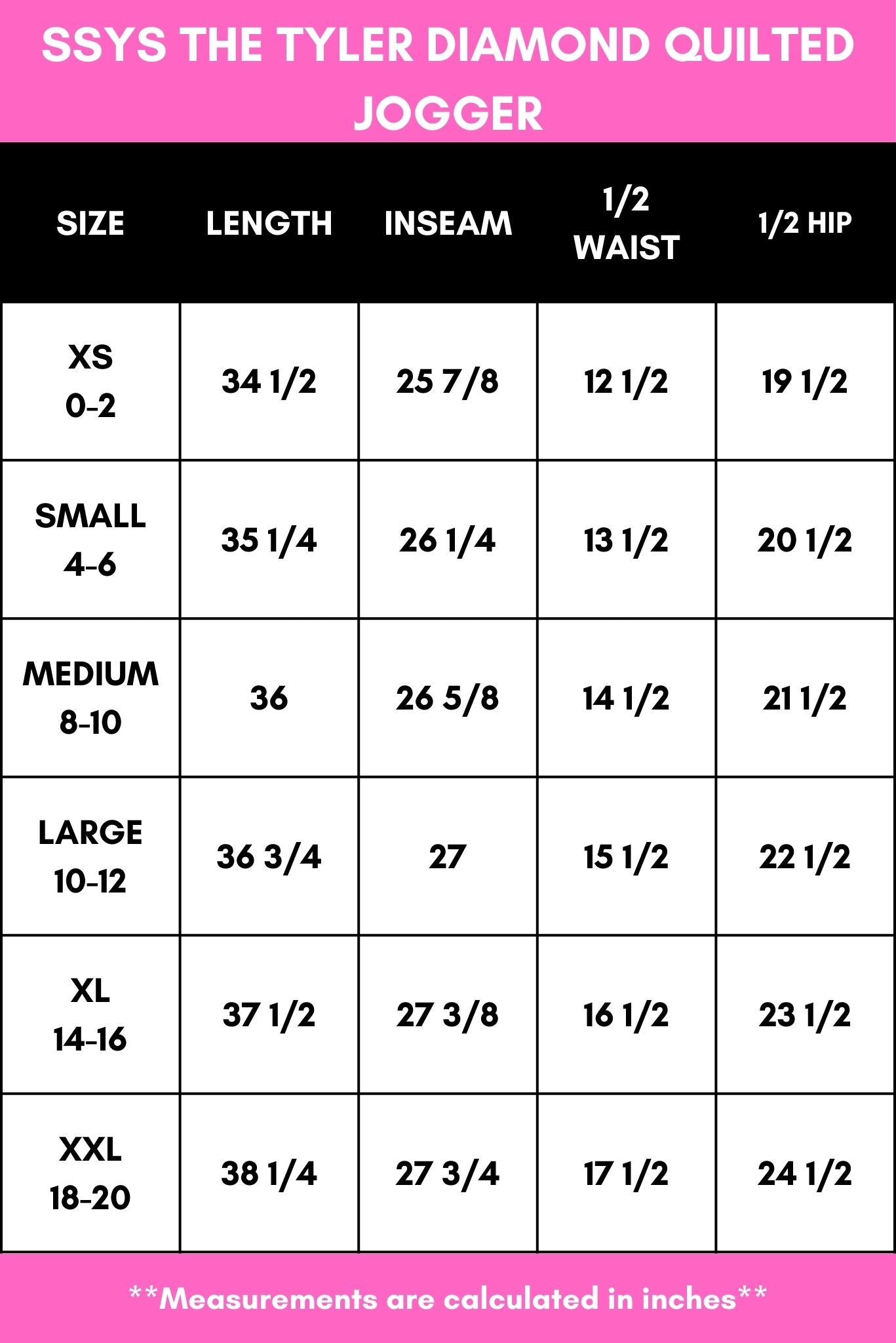 DOESN'T GET BETTER THEN THIS! Introducing the SSYS Tyler Diamond Quilted Black Joggers!!! The response to the original SSYS Tyler Shacket was through the roof, so we had to bring it back in an updated form and add to the play! Y'all loved our signature diamond quilted fabric as much as we do, so why not make it into joggers?! Perfectly designed to pair with the matching SSYS Tyler Cropped Diamond Quilted Black Shacket to make a chic set, but don't stop there! The styling options are flexible and endless! You know and love the SSYS Tyler, so add to the play and the possibilities are ENDLESS!