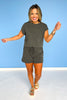 Black Short Dolman Sleeve Elastic Waist Short Set *FINAL SALE*