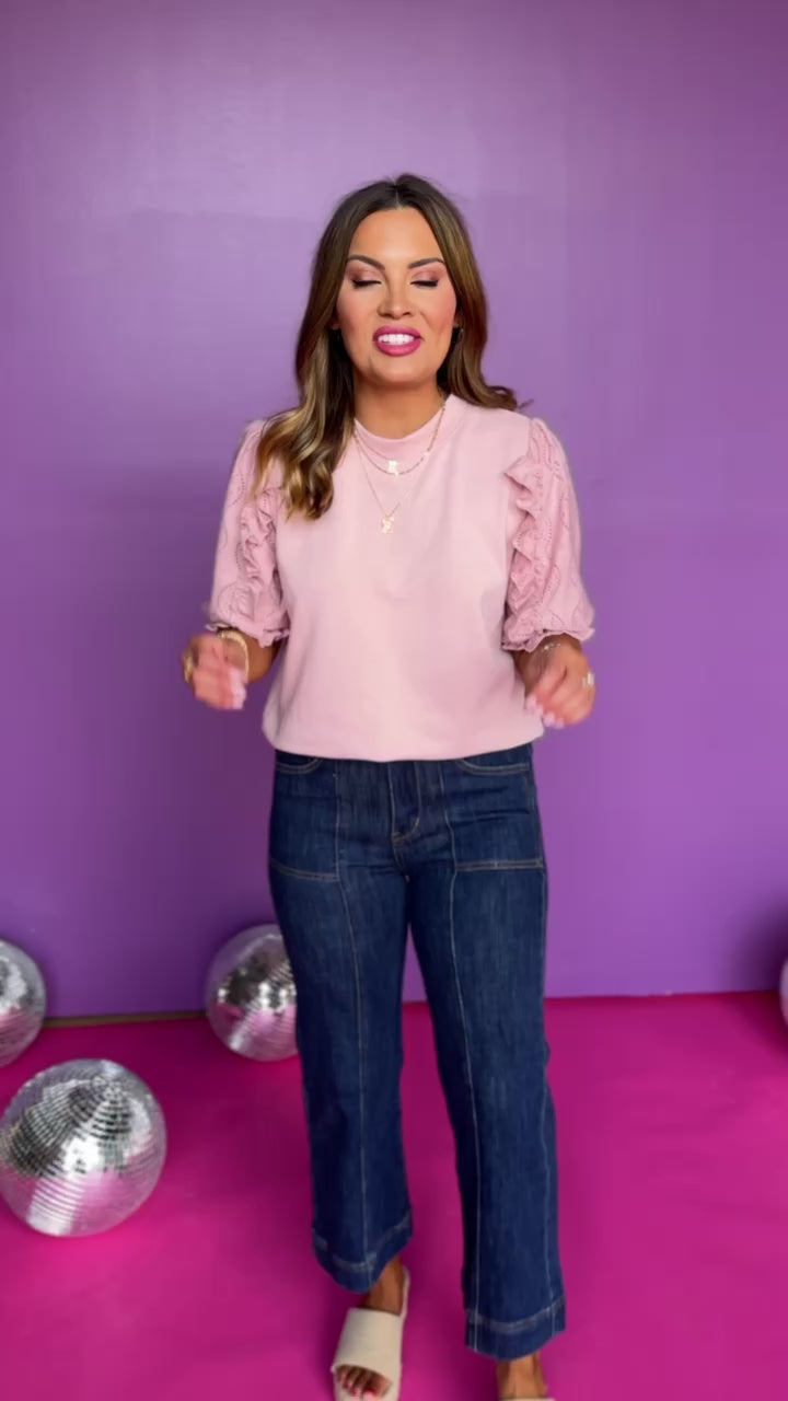 Blush Pink Contrast Ruffle Detail Sweatshirt Top *FINAL SALE*