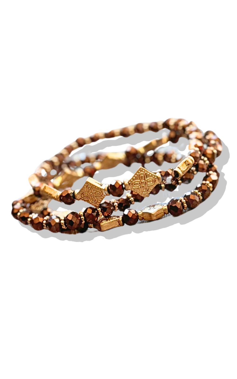 Brown Metal Crystal Stone Beaded Stretch Bracelet Set