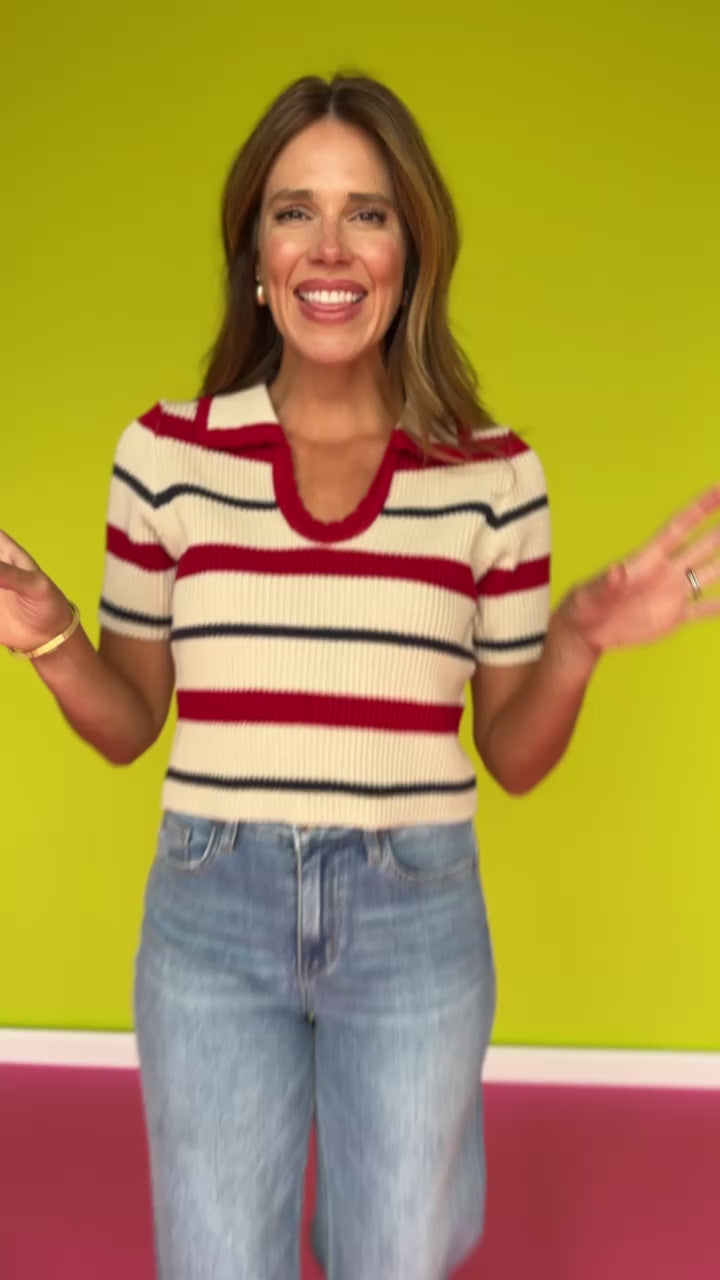 Elevate your casual wardrobe with this playful Brown Stripe U Neck Collared Short Sleeve Top! The unique U-neckline adds a flirty twist to the classic collared design, while the brown stripes create a fun visual rhythm. Perfect for mixing and matching with your favorite bottoms for an effortlessly stylish look that transitions from coffee dates to weekend adventures. Shop our BOTTOMS and SHOES to build your look!