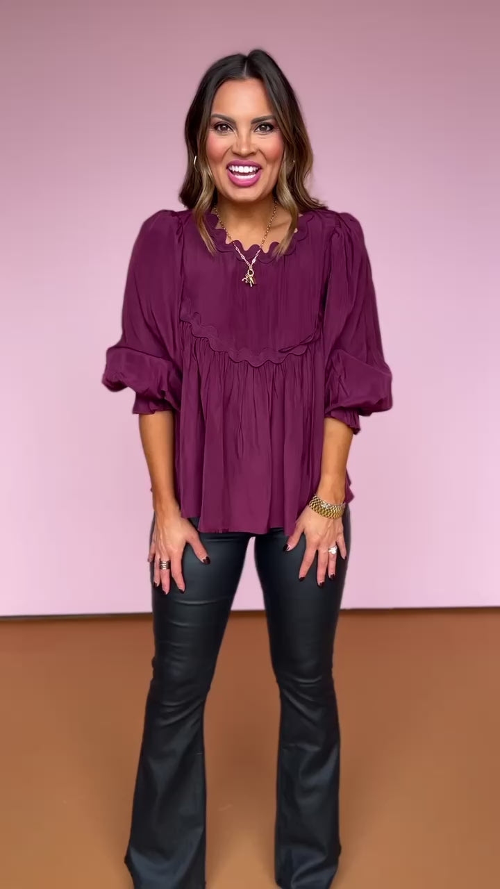 Burgundy Ric Rac Trim Babydoll Top *FINAL SALE*