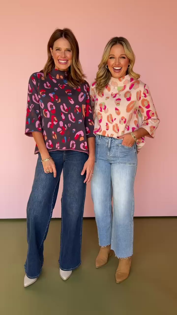 Add some extra fun to your wardrobe with our Charcoal Multi Animal Pattern Mock Neck Bell Sleeve Sweater! This playful sweater features a unique charcoal multi color animal print, a trendy mock neck, and flirty bell sleeves. Stay cozy and fashionable with this whimsy piece! Style with any of our in stock BOTTOMS and SHOES to create your OOTD!