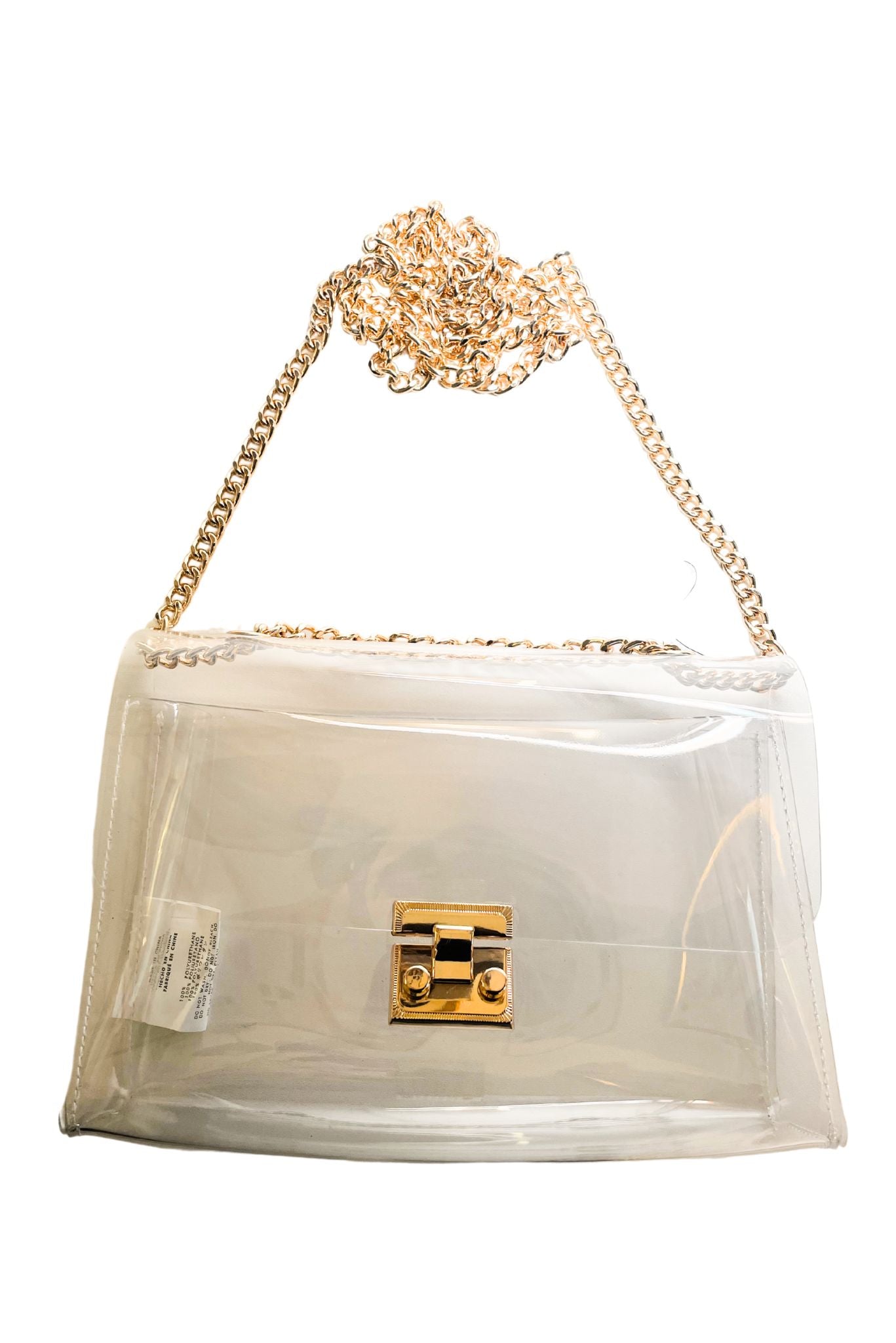 Introducing our Clear Double Chain Purse! Its transparent design lets you show off your essentials in style, while the double chain straps add a trendy twist. Perfect for keeping things light and lively at any event or game day!