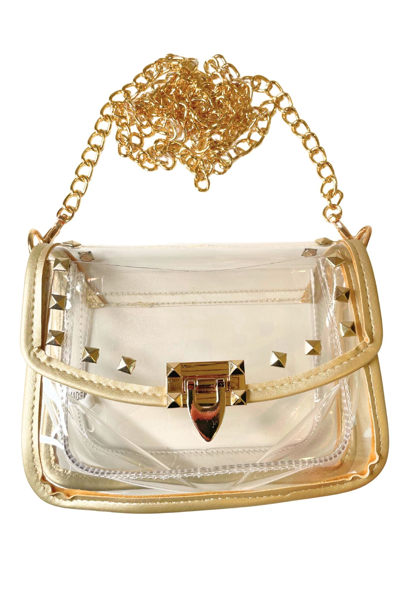 Accessorize your gameday look with our Clear Stud Detail Purse! This accessory features transparent design accented with bold studs, perfect for showing off your style while keeping essentials close. Lightweight and trendy, it’s your go-to for a chic, carefree vibe wherever you go!