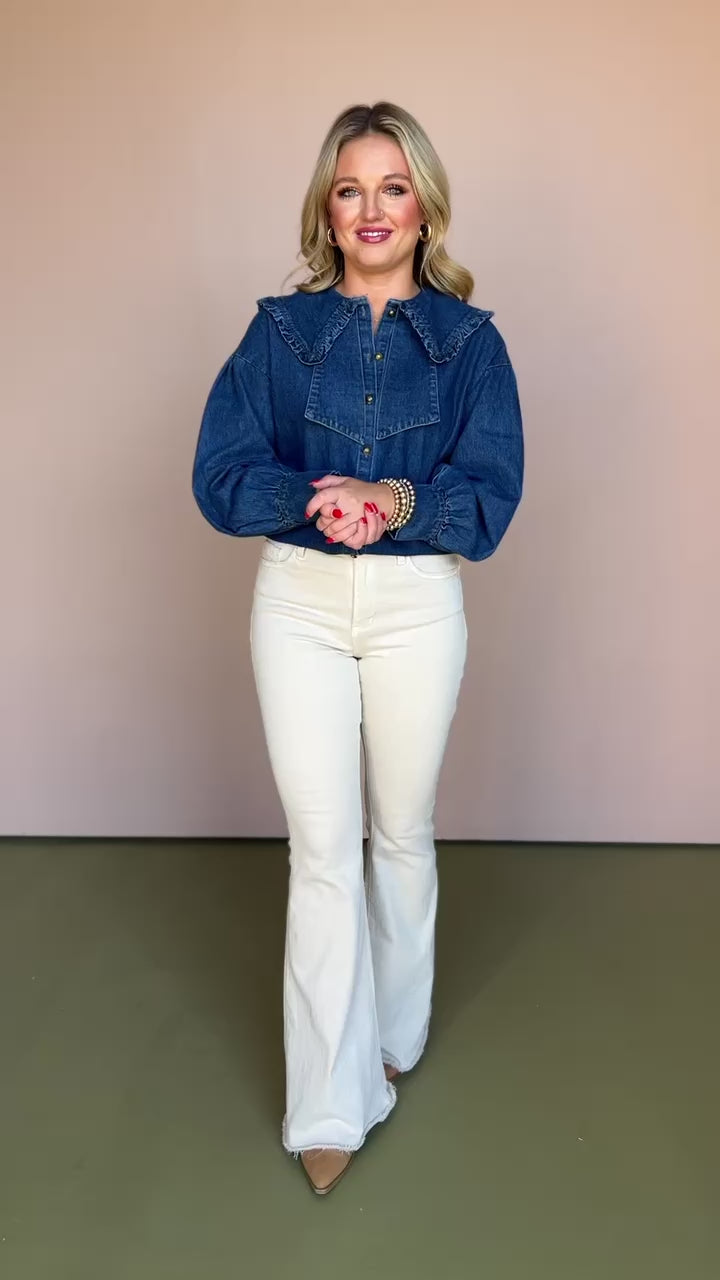Denim Ruffled Peter Pan Collar Button Up Top *FINAL SALE*