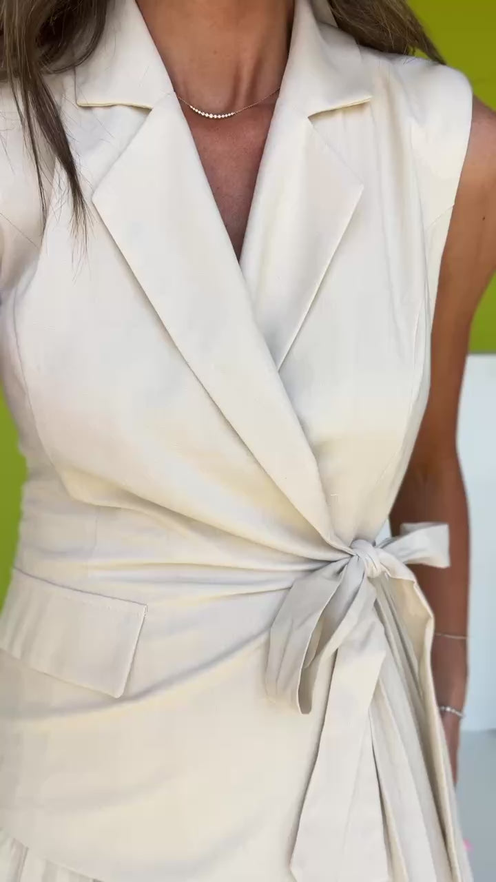 Get ready for summer with our Ecru Sleeveless Pleated Linen Midi Dress! Made with high-quality linen, this dress is perfect for staying cool and stylish. The elegant pleats add a touch of sophistication, while the midi length is perfect for any occasion. Say yes to comfort and style with our Ecru dress!