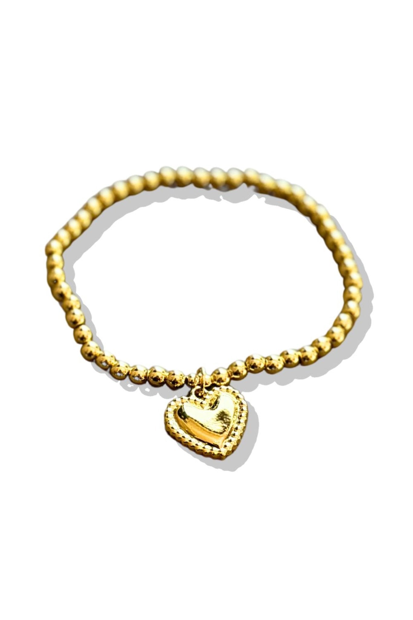 Add some love and shine to your wrist with our Gold Metal Ball Heart Charm Bracelet. The perfect accessory for any outfit, this bracelet features a delicate chain adorned with dainty gold metal balls and a sweet heart charm. Channel your inner golden goddess with this charming addition to your jewelry collection.