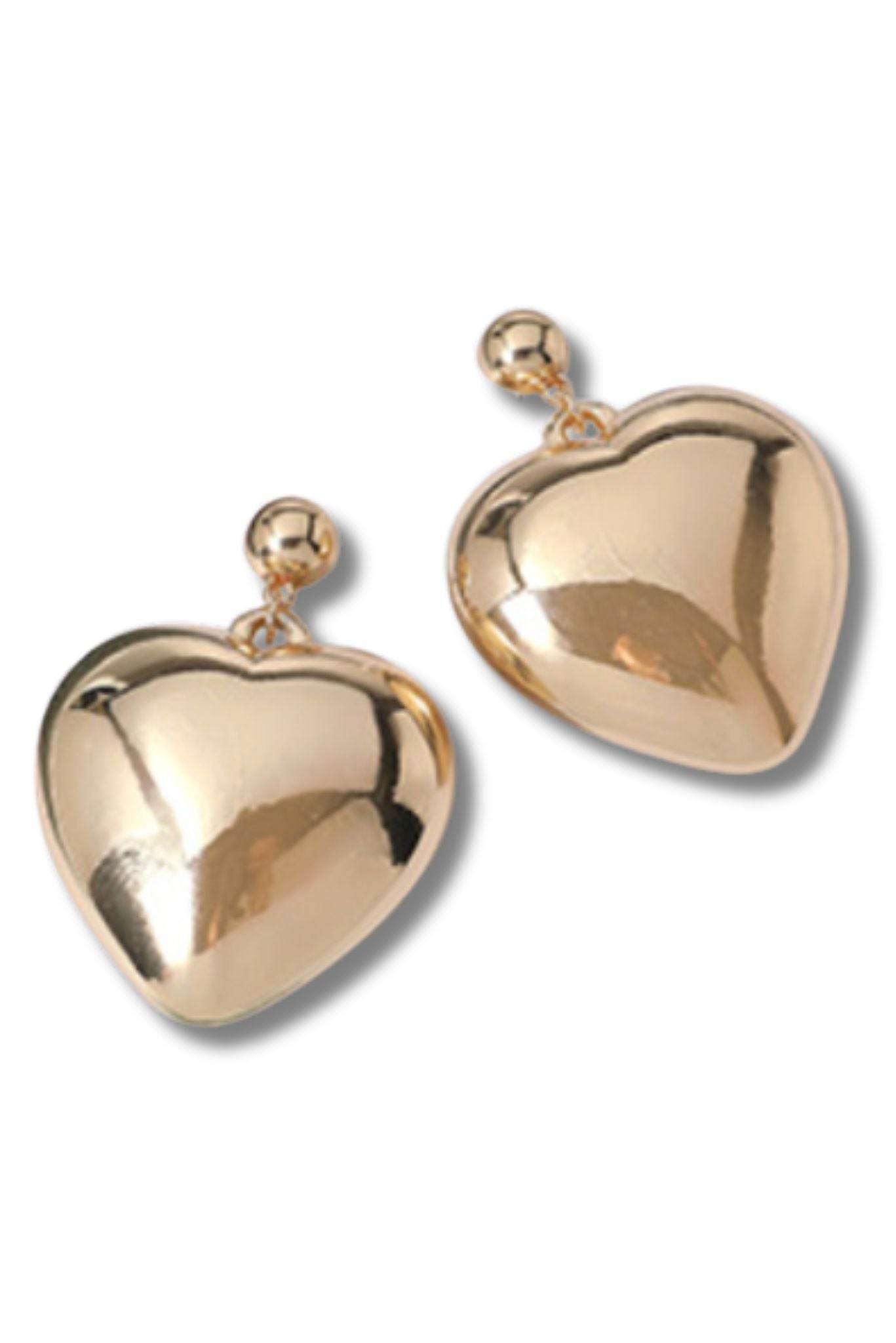 Gold Oversized Puffy Metal Heart Dangle Earrings *FINAL SALE*