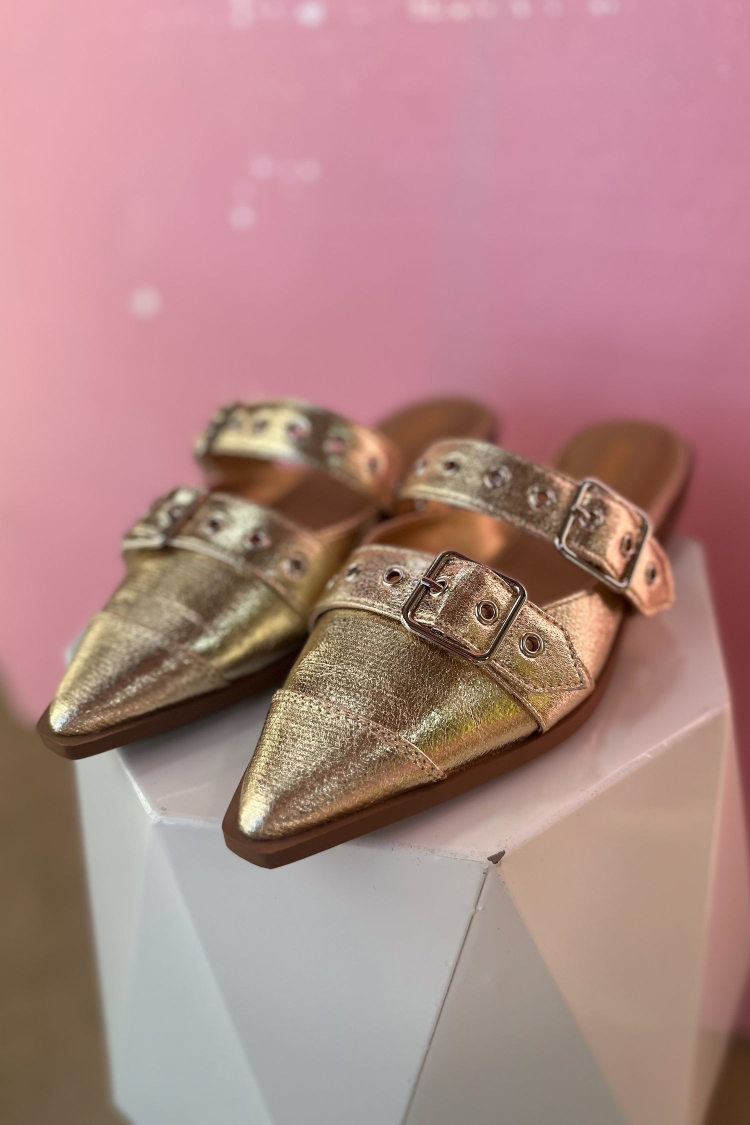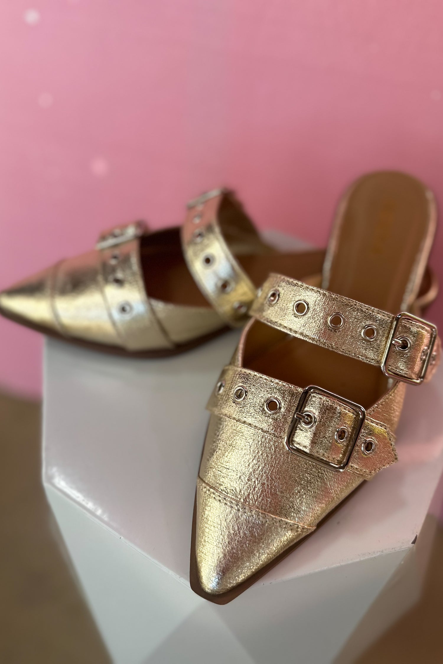 Gold Pointed Double Buckle Mule Shoes *FINAL SALE*