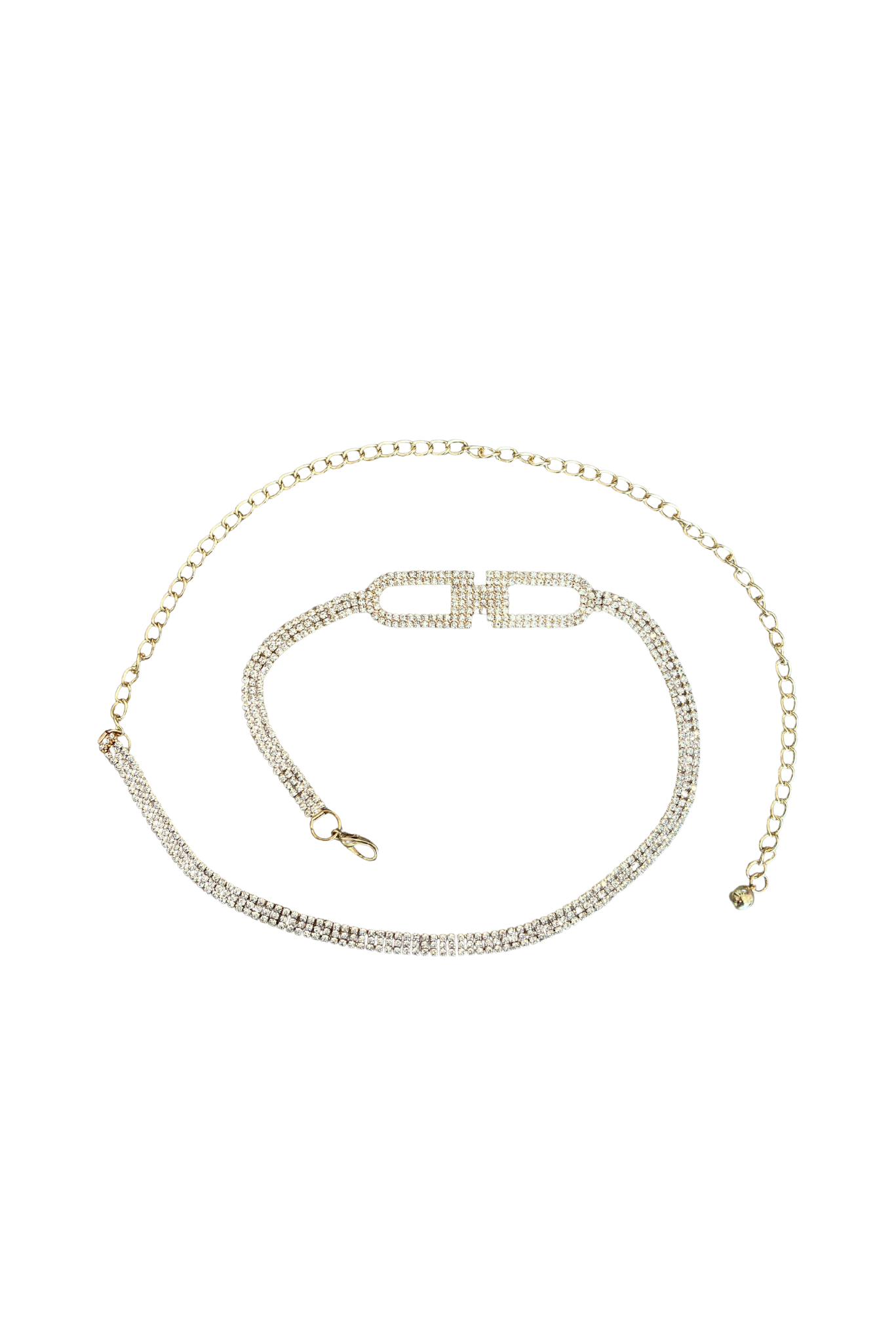 Add a touch of sparkle to any outfit with this Gold Rhinestone Link Belt. Its shimmering rhinestone links catch the light beautifully, making it perfect for elevating both casual and dressy looks. Lightweight and adjustable, this belt brings playful glam without feeling heavy or fussy. Whether cinching your favorite dress or dressing up jeans, it’s the perfect accessory to shine wherever you go.