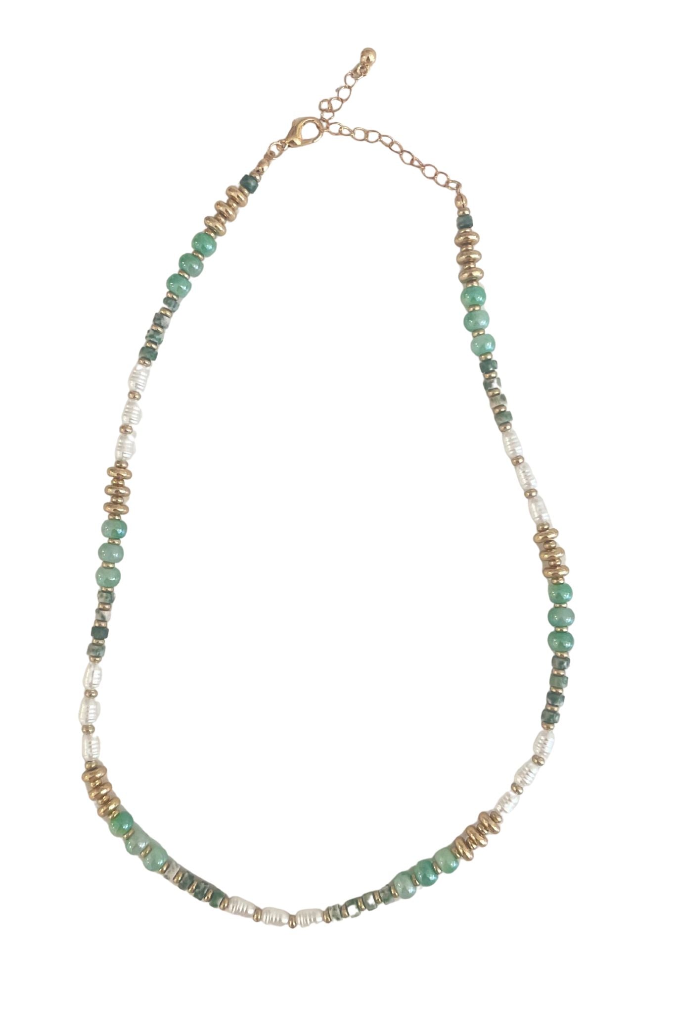 Brighten up any outfit with this unique Green Multi Bead Necklace. Made with a variety of beads, it adds a pop of color to your look. Perfect accessory to add a little extra something to your OOTD!