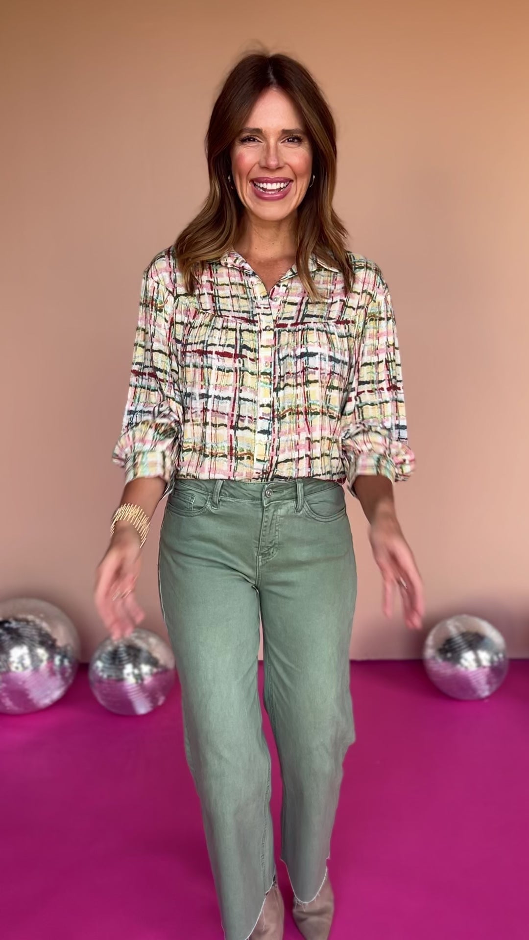 Green Multi Plaid Printed Button Front Collared Top *FINAL SALE*