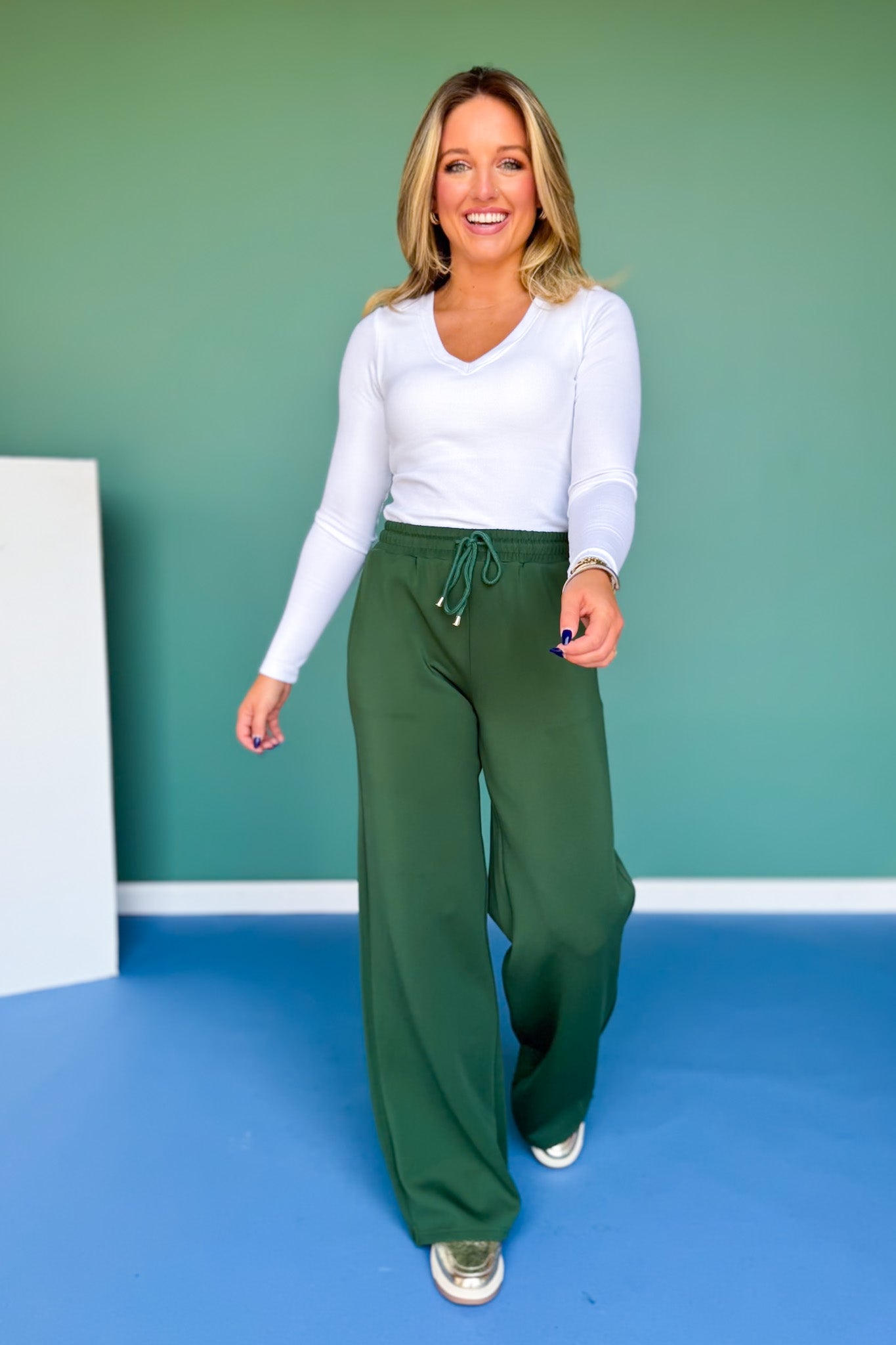 Discover the perfect balance of comfort and polish with the Hunter Scuba Wide Leg Pant by SSYS The Label. Designed in a luxe scuba knit fabric, these pants offer a smooth, structured drape with just the right amount of stretch. The wide-leg silhouette flatters every figure, while the adjustable drawstring waistband adds a touch of casual ease without sacrificing style.