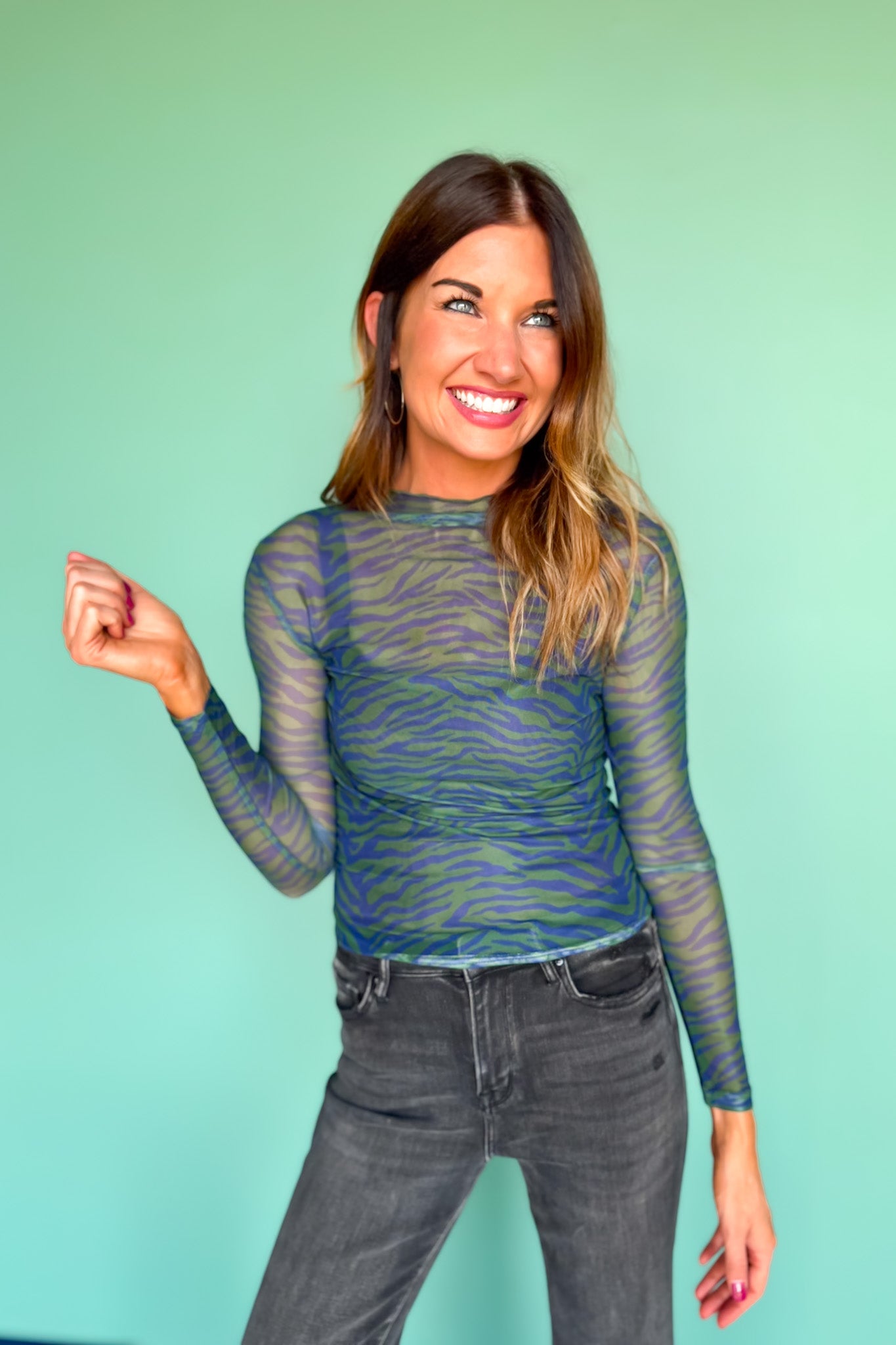 Soft, sheer, and effortlessly statement-making — the SSYS Ingrid Printed Mesh Top in Hunter Stripes is the layering piece your wardrobe needs! This lightweight mesh top features a delicate allover stripes print, making it perfect for adding dimension to any look. Designed with a flattering fitted silhouette and slight stretch for comfort, it’s easy to tuck, layer, or wear on its own. Style it under overalls, denim jackets, or our SSYS Zuri Denim Cap Sleeve Jumpsuit for an instant outfit upgrade!
