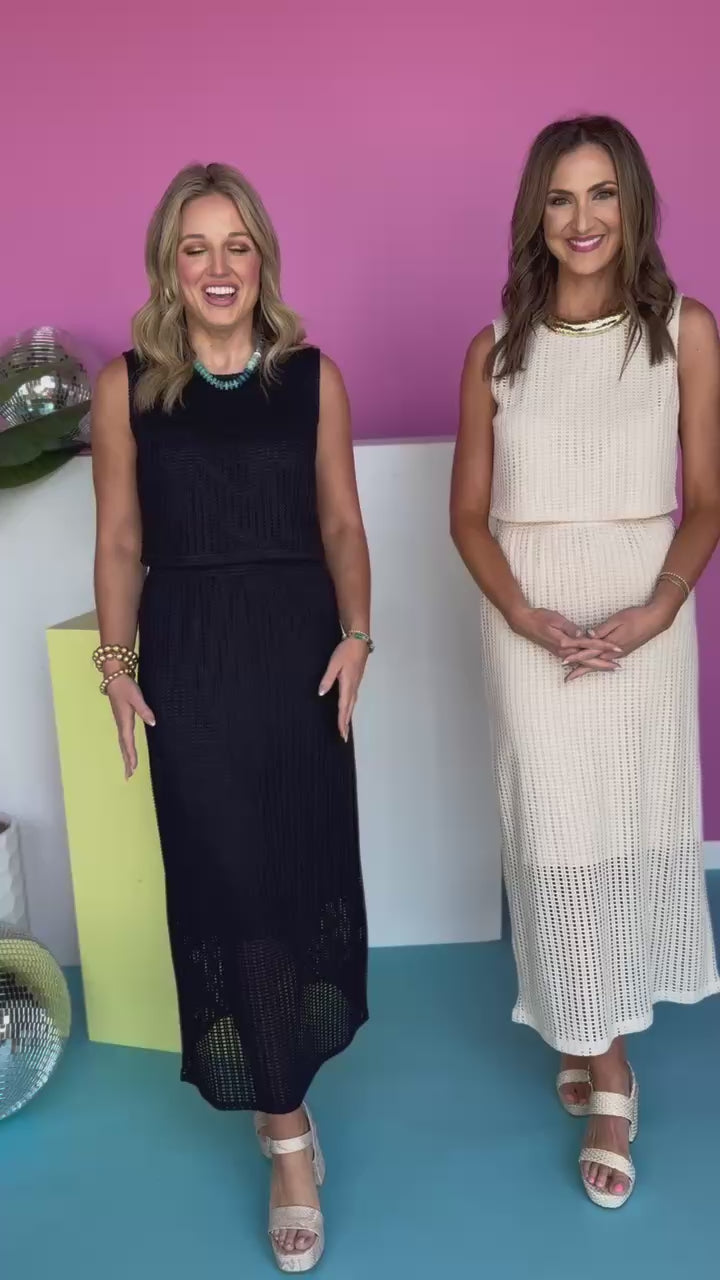 The most GORGEOUS NEW SET is coming your your way and this one DESERVES a standing ovation!!! Please welcome the SSYS Hudson Crochet Midi Skirt Set In Ivory! The quality is a 10/10 from the crochet fabric to the fit to EVERYTHING, it truly doesn't translate through the camera how good she really is! Hudson feels dreamy on the body with the soft but substantial crochet fabric and lining. She is the most chic set but don't be afraid to mix and match her to create multiple looks! DO NOT overthink the silhouettes, Hudson was designed to flatter and skim your body, but also be very modest and easy to wear! We don't play FAVORITES around here, but your girl HUDSON is at the top of our lists! Shop our SHOES and ACCESSORIES to polish off your look!