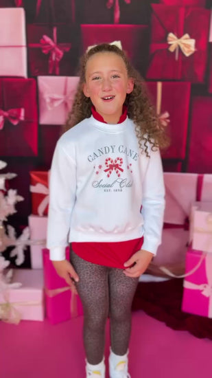 Get your little one ready for the sweetest season in the Kids Candy Cane Social Club Graphic Sweatshirt in Ivory by SSYS The Label! This festive favorite brings all the holiday cheer with a playful Candy Cane Social Club graphic and classic red-and-green details — perfect for cozy winter days and family festivities.