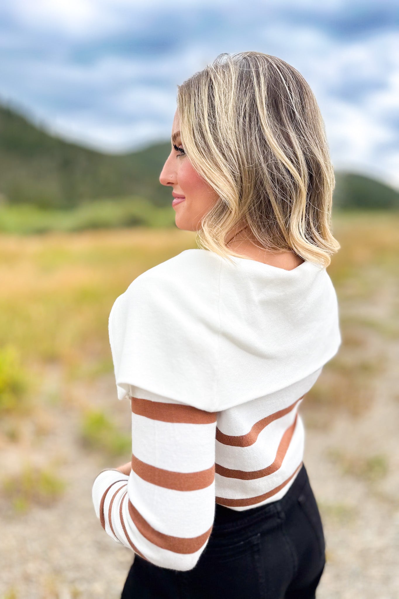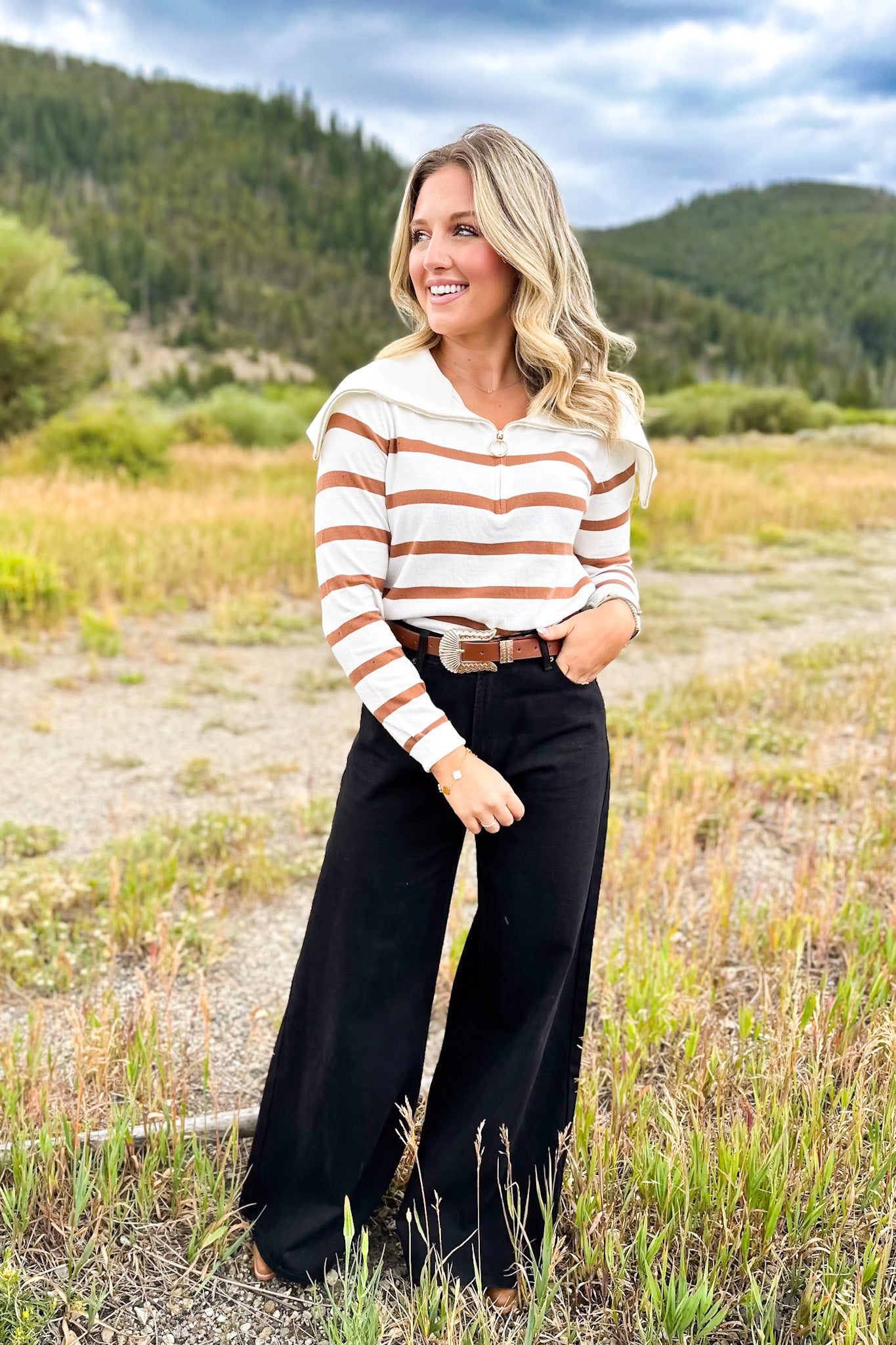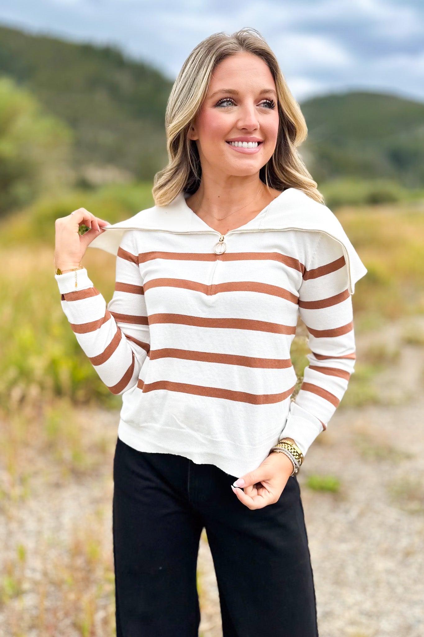 SSYS Alex Stripe Zip Long Sleeve Top In Ivory Taupe