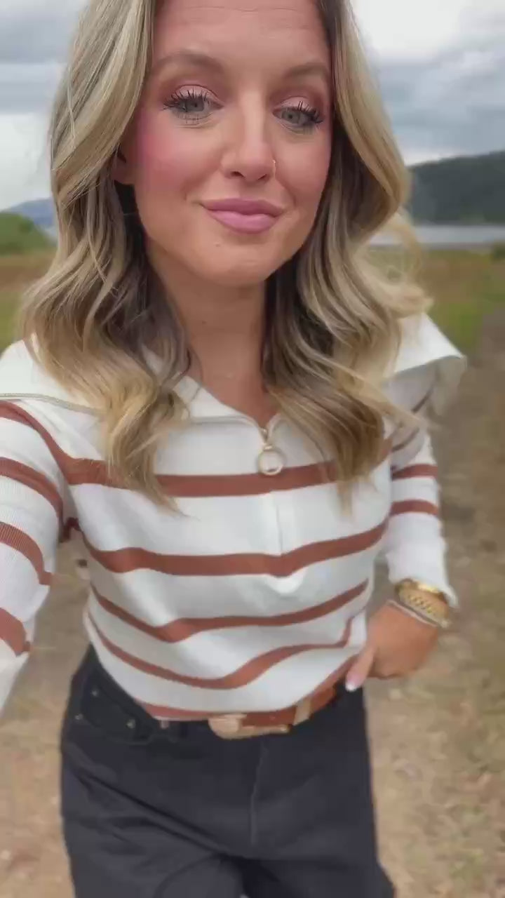 Bold and playful, the Alex Stripe Zip Long Sleeve Top in Ivory Taupe by SSYS The Label is the perfect mix of casual comfort and elevated style. Designed in a ivory with contrasting taupe stripes, this top features a half-zip front with a ring pull for a sporty-chic touch. The soft knit fabric and flattering fit make it a versatile piece you’ll reach for on repeat.