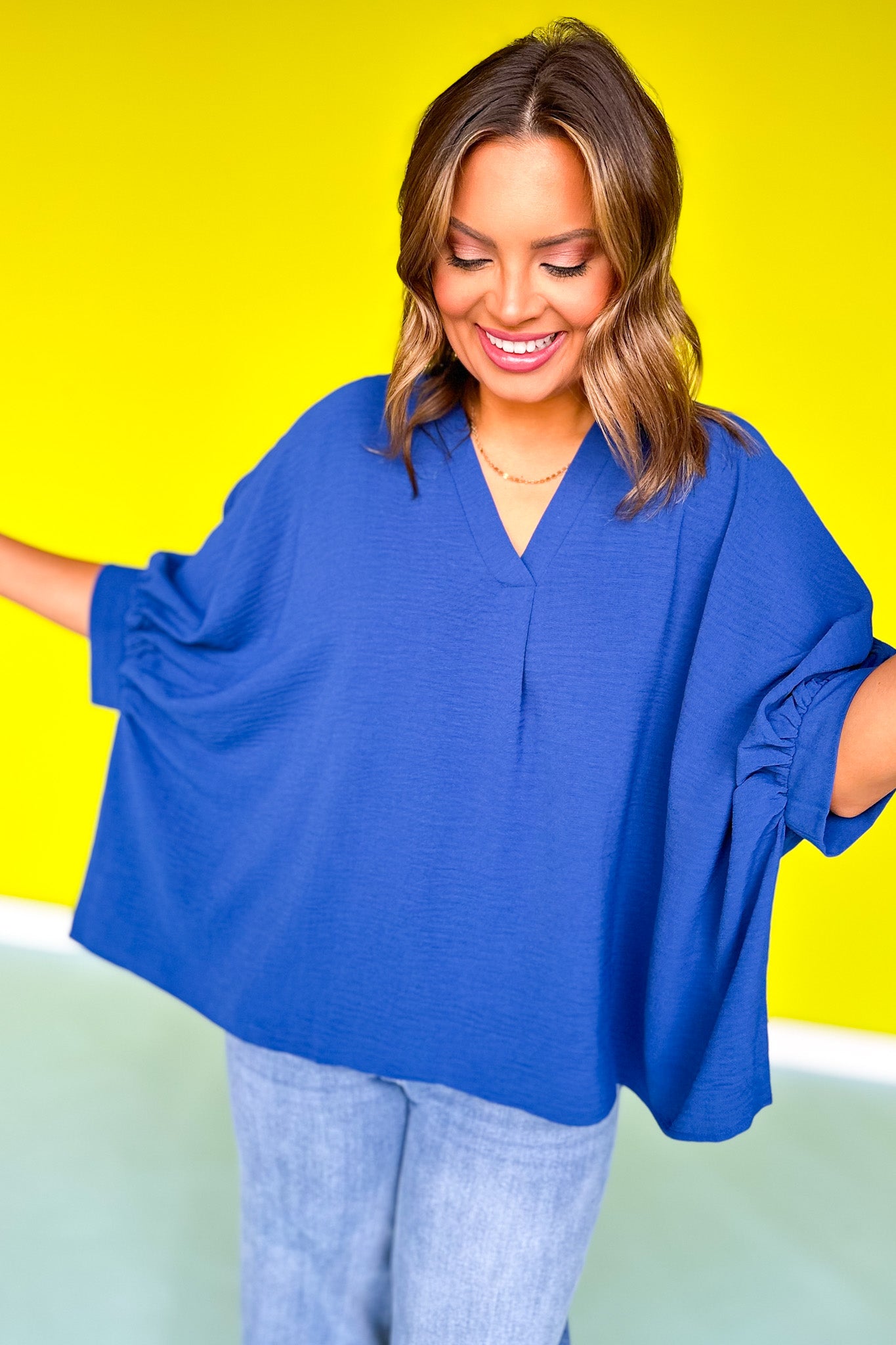 Meet your new wardrobe bestie – introducing our chic Light Navy V Neck Half Puff Sleeve Top! The sleeves add a pinch of drama while the V-neck brings the classic and flirty vibes. Perfect for those "nothing to wear" moments, this top transforms your look and so versatile! Shop our BOTTOMS and SHOES to build your effortless OOTD!