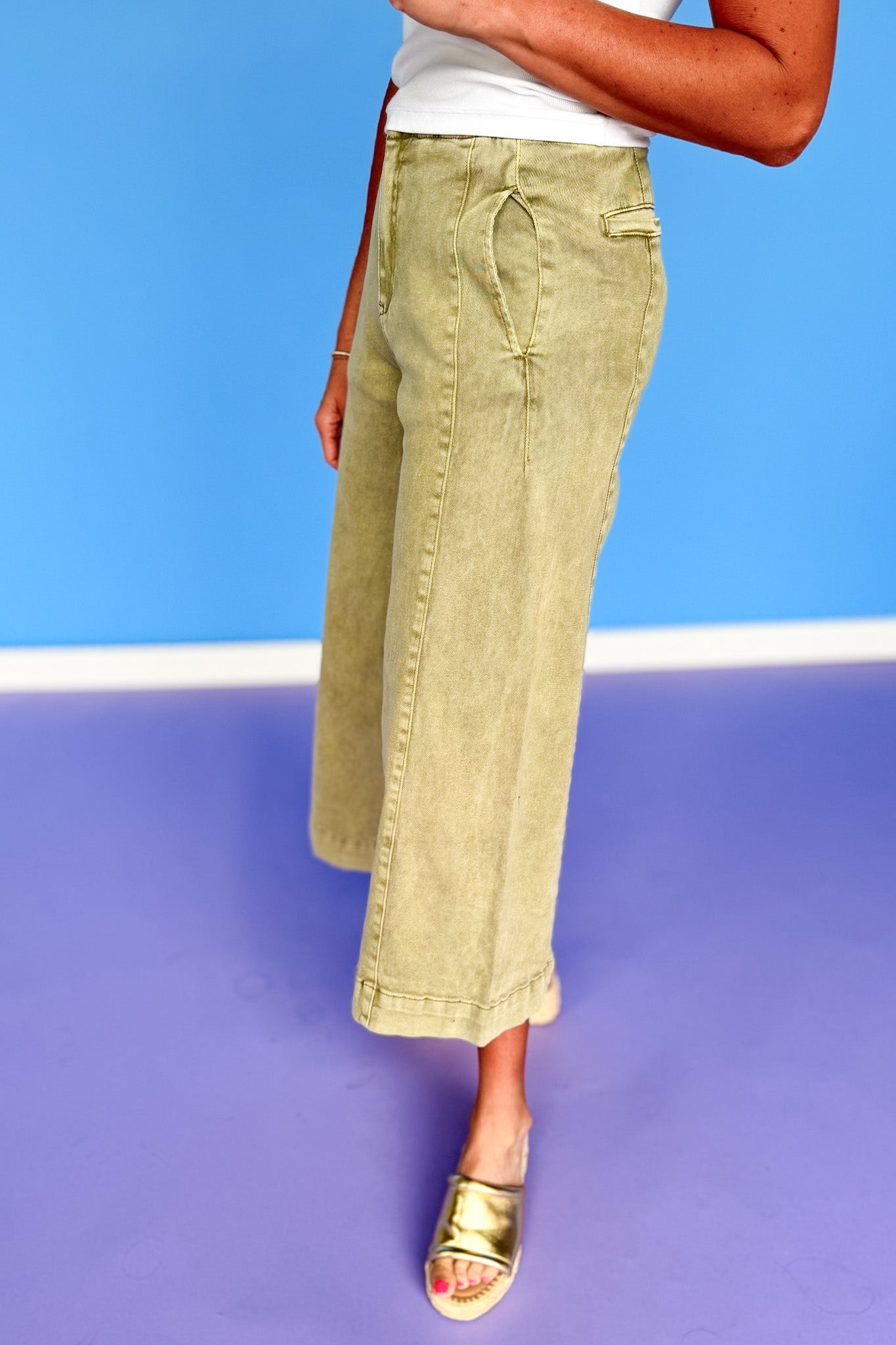 Light Olive High Rise Cropped Wide Leg Jeans *FINAL SALE*