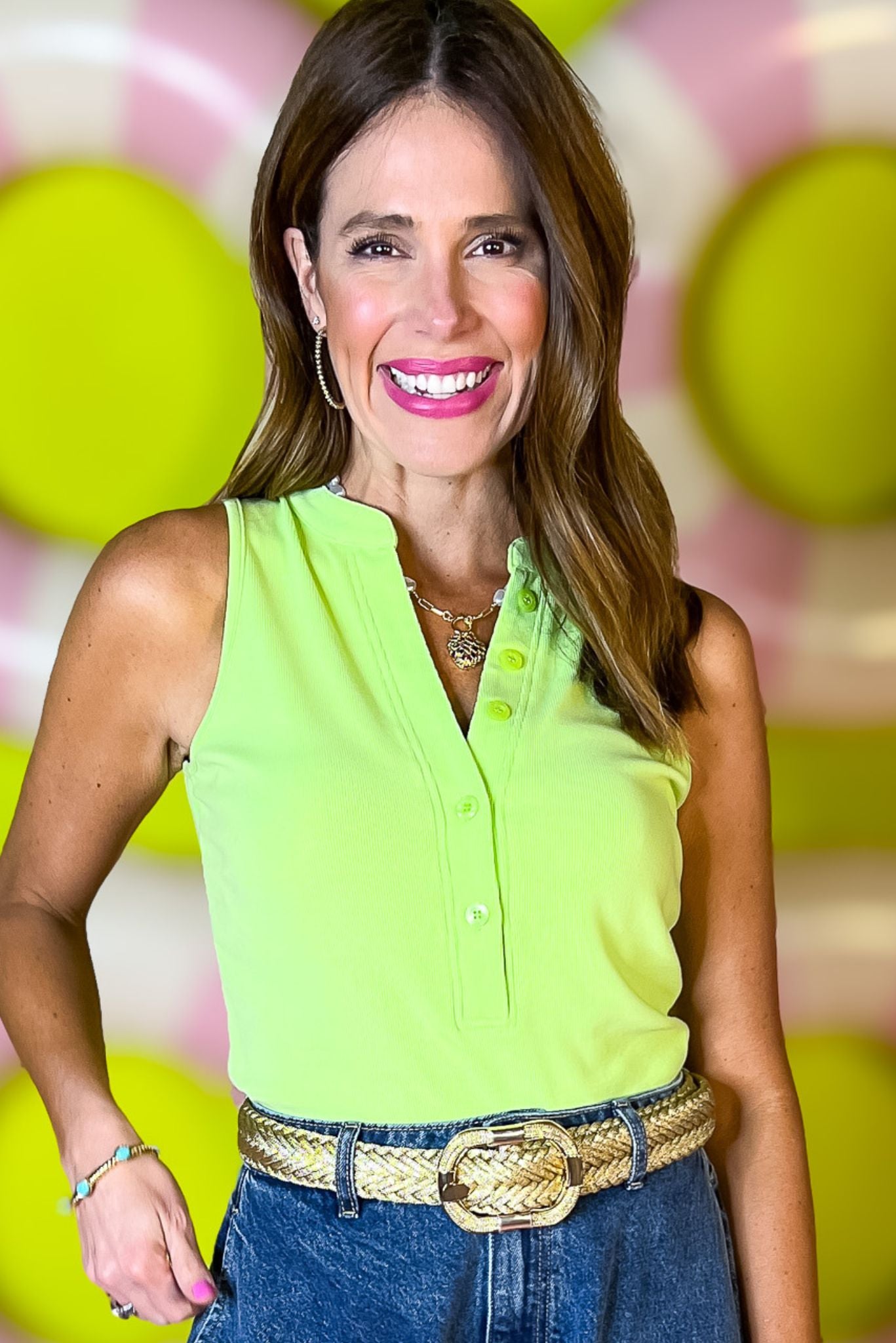 GALS, your girl CECE is BACK and UPDATED for SPRING!!! Introducing the SSYS Cece Knit Sleeveless Tank In Lime! Tried and true silhouette y'all know and love, but now sleeveless! You will be styling her with all your shorts, skirts and skorts in this SSYS Spring Collection 2025. Cece is a STAPLE piece that you have to have in your wardrobe this season! Need outfit inspiration? Style Cece with our SSYS Denim Mom Shorts for an effortless and chic OOTD! Shop our SHOES and ACCESSORIES to polish off your look!