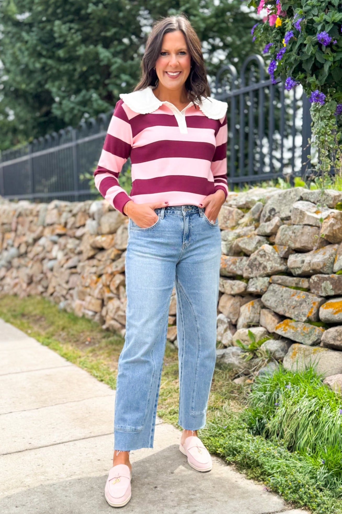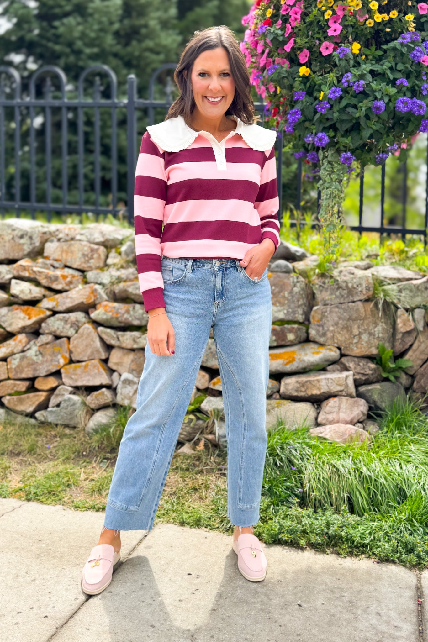 Step into style with the Mica Mid Rise Seam Detail Ankle Straight Leg Jeans! These jeans bring a fun twist to your everyday look with their unique seam details and flattering mid-rise fit. The ankle-length cut adds a playful edge, perfect for showing off your favorite shoes. Comfortable and chic, they’re ready to be on REPEAT in your closet! Shop our in stock and versatile collection of TOPS and SHOES to build your multiple looks!