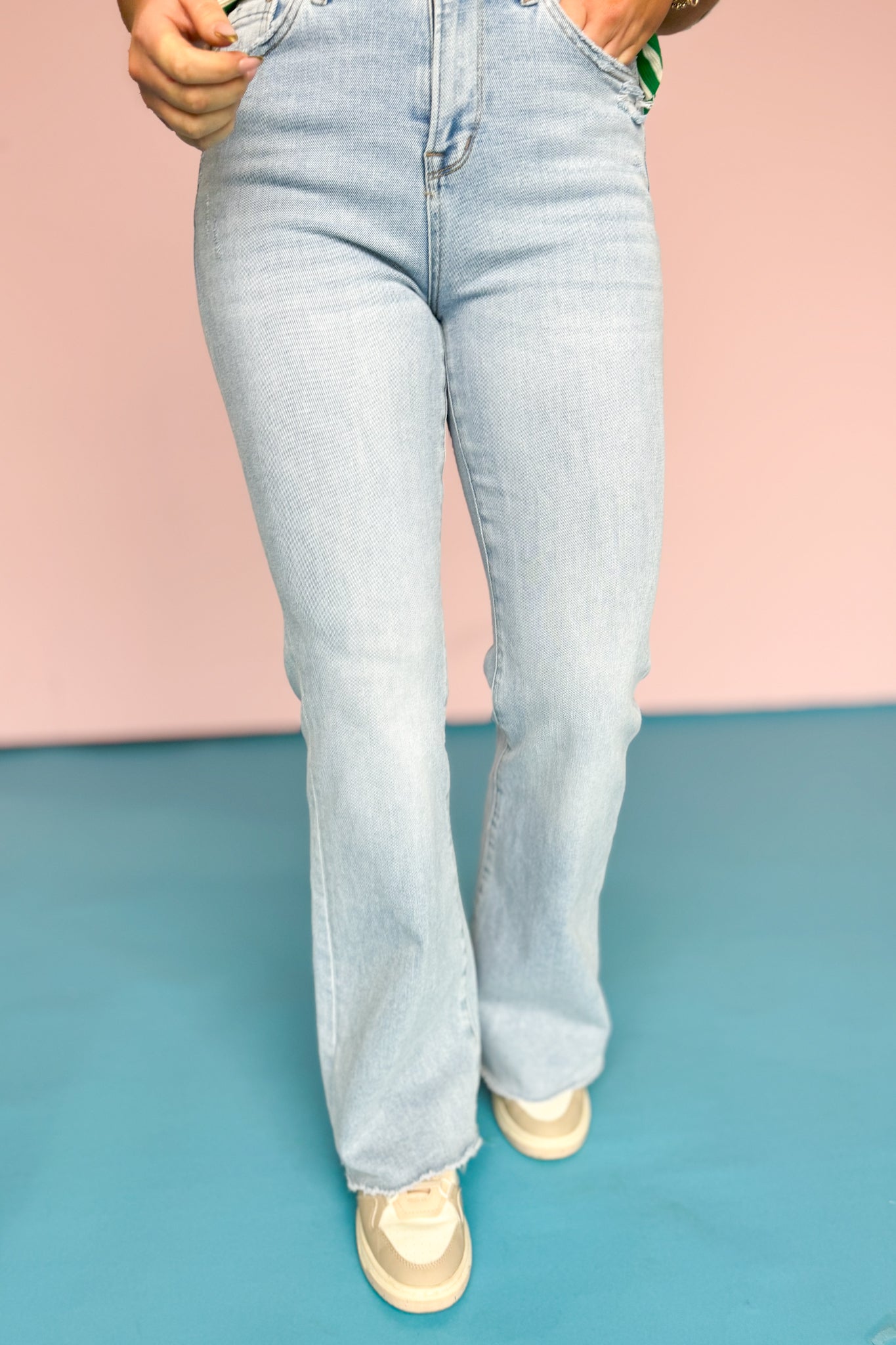 Introducing Mica Super High Rise Vintage Flare Jeans - the ultimate combination of retro style and modern comfort! With a high rise fit and vintage flare, these jeans will have you looking and feeling your best. Say goodbye to boring denim and hello to a playful, whimsy look. Style up with a heel for date night or pair with boots for a more casual vibe! Shop our in stock and versatile collection of TOPS and SHOES to complete your look!