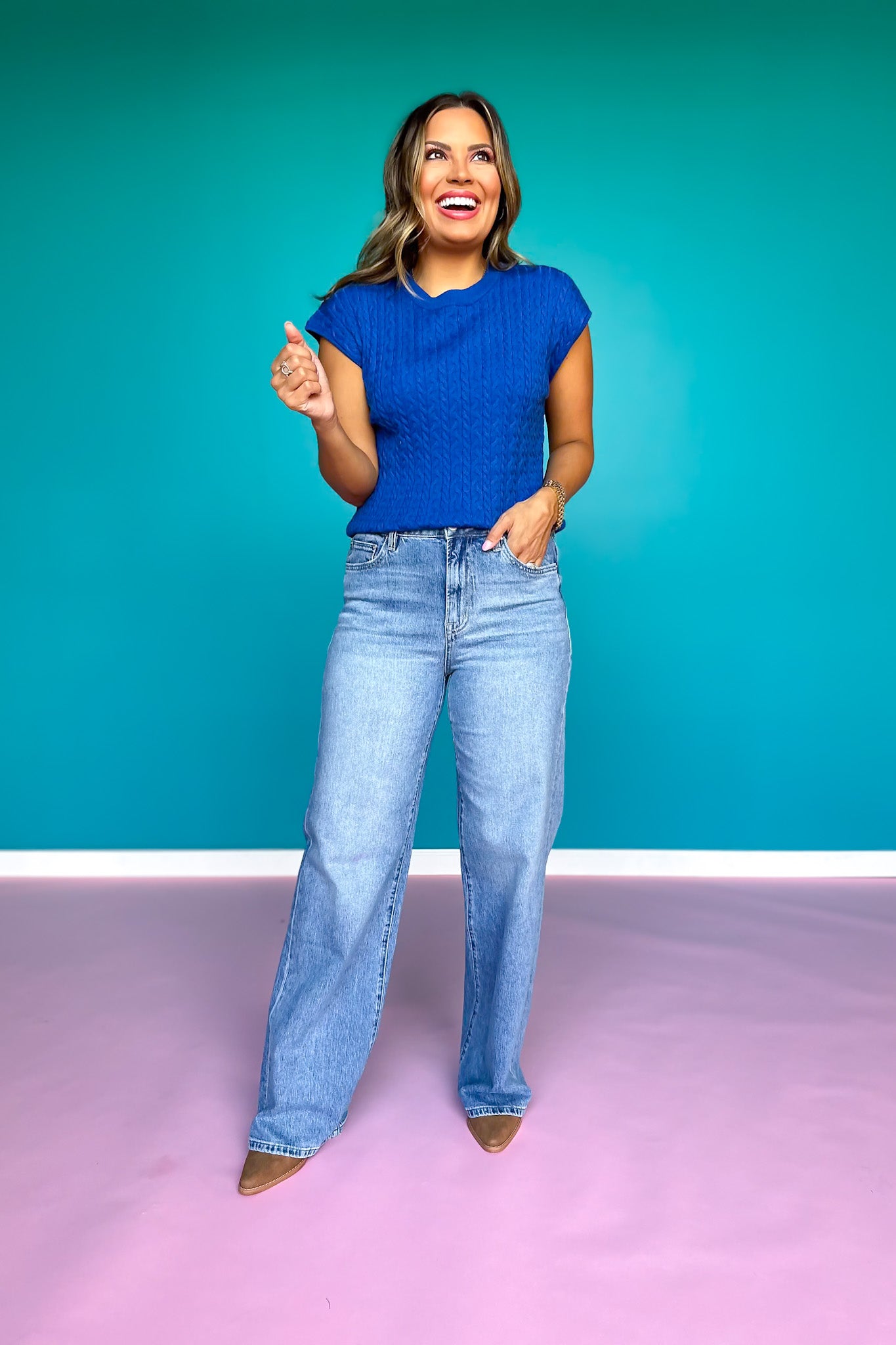 Get ready to elevate your style game with our Mica Super High Rise Wide Leg Jeans! These jeans feature a flattering high rise and wide leg design, perfect for creating a chic and effortless look. Say goodbye to uncomfortable jeans and hello to all-day comfort and style! Shop our in stock and versatile collection of TOPS and SHOES to build your multiple looks!