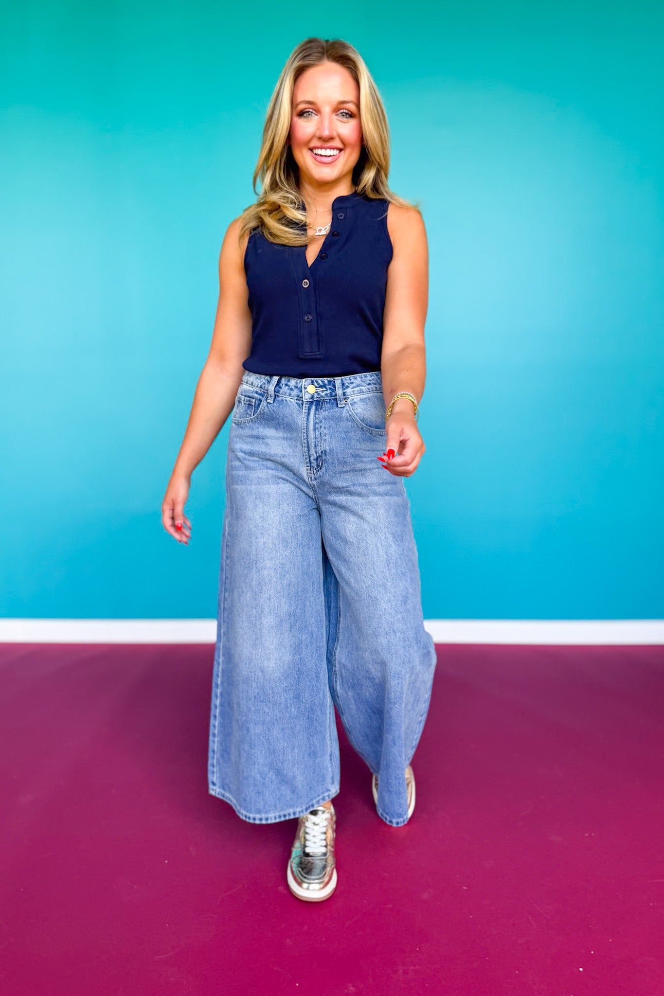 GALS, your girl CECE is BACK in NEW COLORS! Introducing the SSYS Cece Knit Sleeveless Tank In Navy! Tried and true silhouette y'all know and love! Cece is a STAPLE piece and will be on REPEAT! Need outfit inspiration? Transition Cece into the fall by layering with the SSYS Signature Denim Cropped Shacket and your fave denim for an effortless and chic OOTD! Shop our BOTTOMS and SHOES to polish off your look!