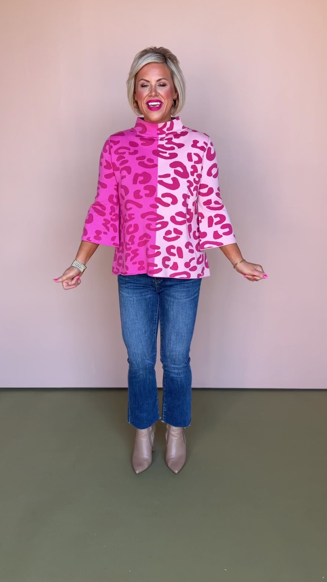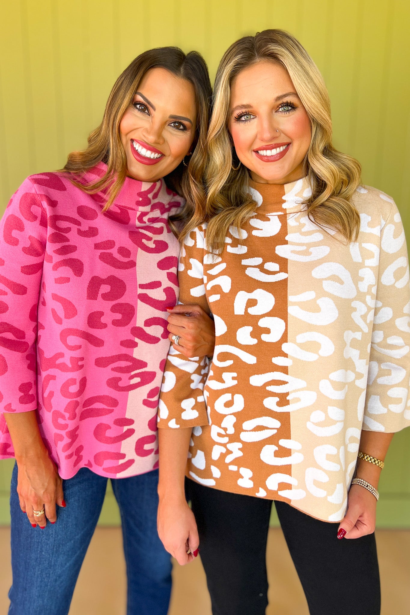 Effortlessly transition into fall with this playful Pink Animal Print Colorblock Mock Neck Sweater. Stand out in style with its vibrant pink animal print and chic colorblock design. Keep cozy and trendy with its mock neck, perfect for cooler days. Add some fun to your wardrobe with this must-have sweater! Shop our DENIM and SHOES to build your OOTD and get ready for compliments!