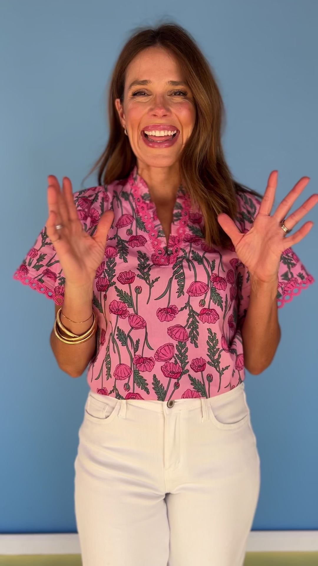 Add a pop of playful charm to your wardrobe with our Pink Floral Print Frill V Neck Lace Trim Short Sleeve Top. The delicate lace trim and feminine frill neckline create an adorable look, perfect for any occasion. Style with white denim and platform sandals for an effortless look to tackle the day in chic style! Shop our BOTTOMS and SHOES for your perfect ensemble!