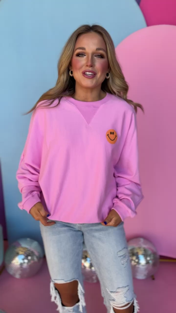 Pink Happy Face Printed Long Sleeve Pullover *FINAL SALE*
