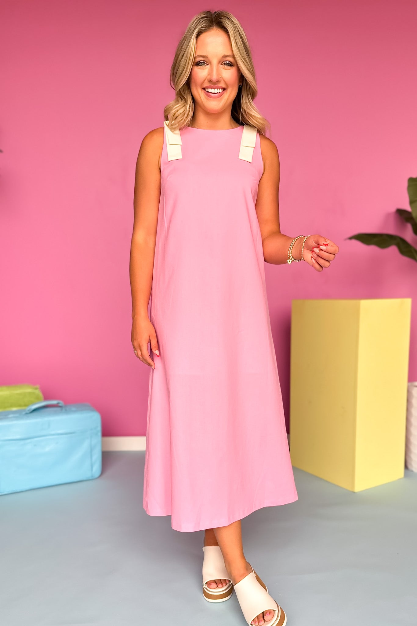 Pink Ivory Contrast Bow Shoulder Linen Maxi Dress *FINAL SALE*