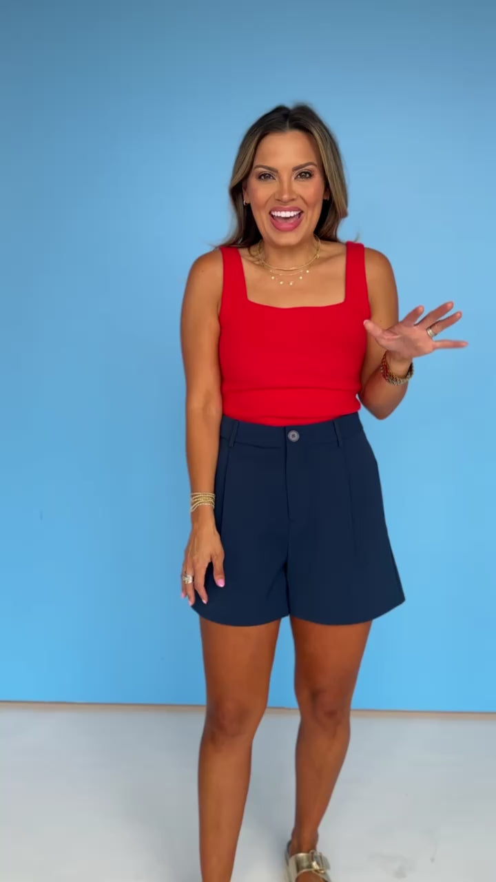 Trouser shorts of your DREAMS are BACK! Introducing the SSYS Jules Trouser Shorts In Poppy!!! SSYS Jules Trouser Shorts are so easy to wear, packable and hang so beautifully on the body. Pair with the SSYS Ivory Ribbed Square Neck Padded Tank, bandana scarf necklace and sandals for an effortless 4th of July ensemble! Shop our in stock and versatile collection of TOPS and SHOES to build your multiple looks!