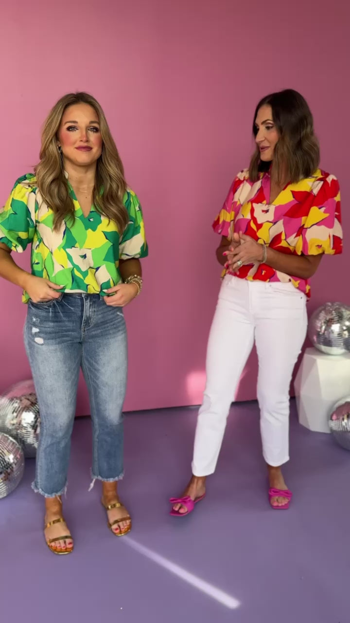 Add some playful charm to your wardrobe with our Red Floral V Neck Band Collar Puff Sleeve Top. Featuring a unique v-neck band color design and puffy sleeves, this top is perfect for adding a touch of fun to any outfit. This top can be dressed down with your favorite denim and sneakers or dressed up for the office and church!