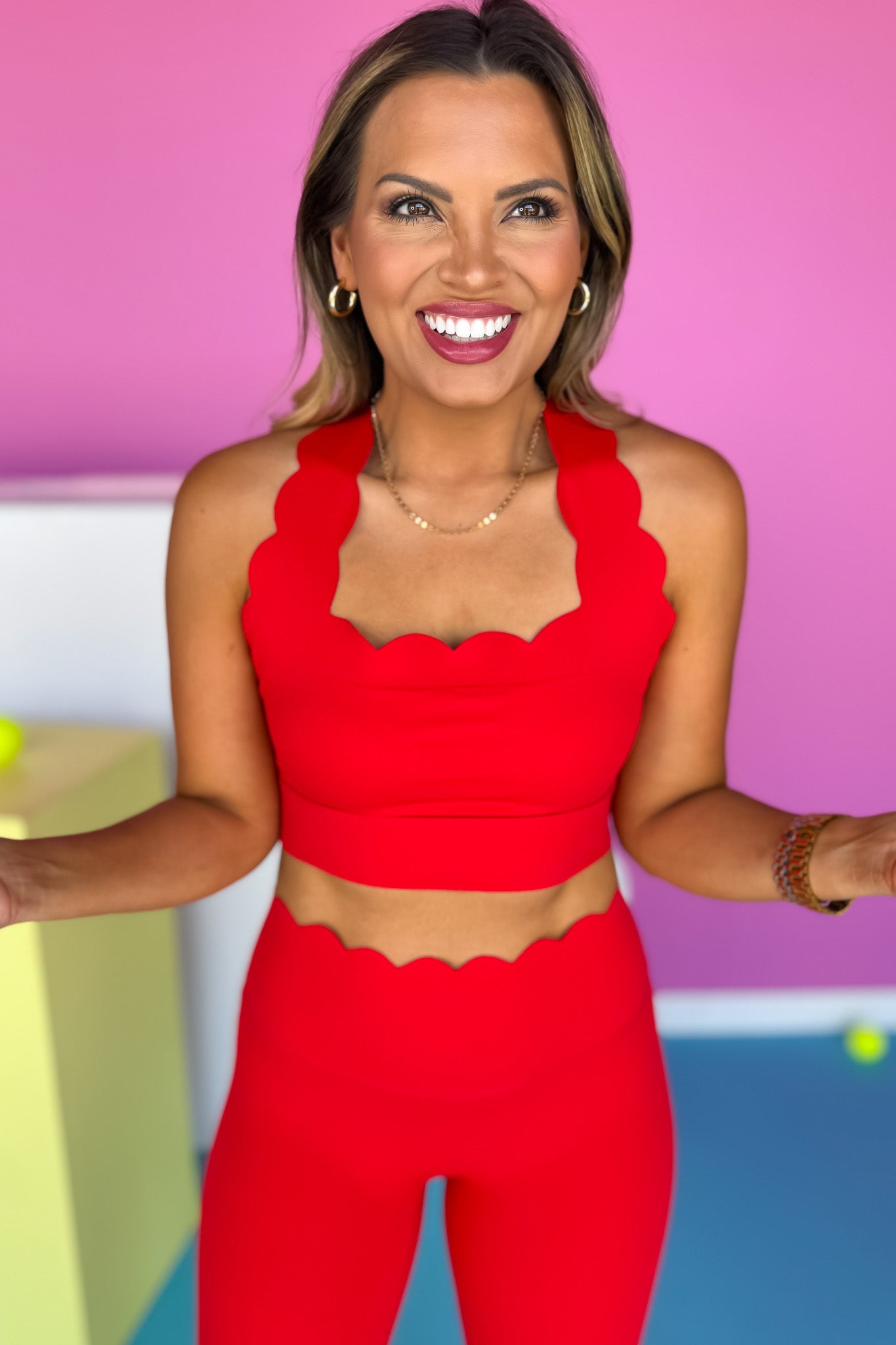 NEW and IMPROVED SILHOUETTE! Introducing our SSYS Red Longline Scallop Cross Back Sports Bra! Your tried and try scallop sports bra got an upgrade to her silhouette - we added full scallop straps, SO CHIC! We love the longline silhouette because we feel more comfortable working out in this sports bra with the matching scallop leggings HERE. This makes for such a versatile athleisure set! Don't forget to shop our SSYS The Label Athleisure TOPS to layer over! Get ready to create major fashion envy at the gym, workout class or wherever the day takes you!