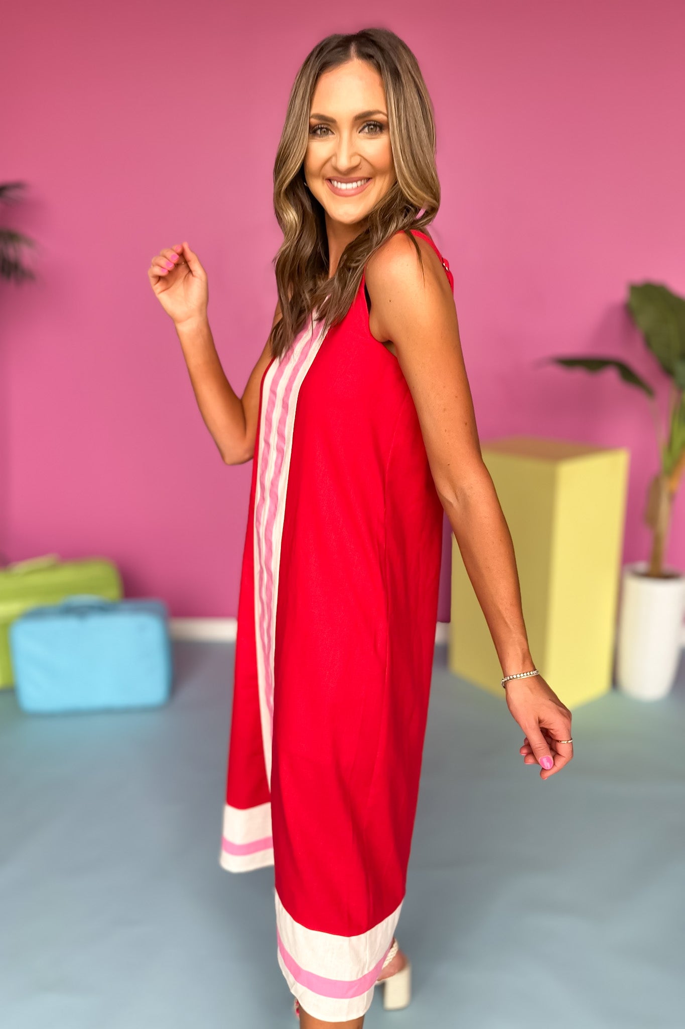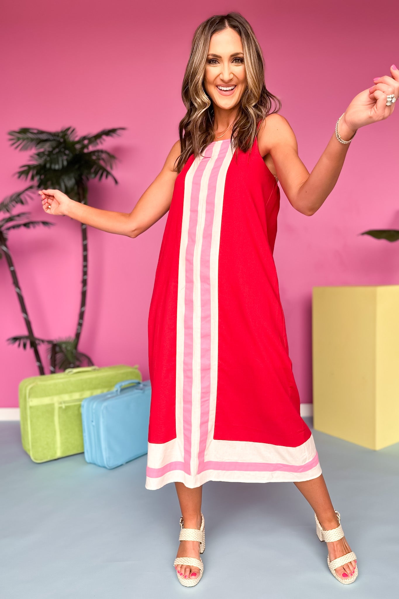Get ready to stand out in this bold and playful Red Square Neck Contrast Accent Midi Dress. The square neck adds a touch of sophistication, while the contrasting accents bring a fun twist. Perfect for any occasion, this dress will have you turning heads with its unique style. Shop our SHOES and ACCESSORIES to polish off your look!