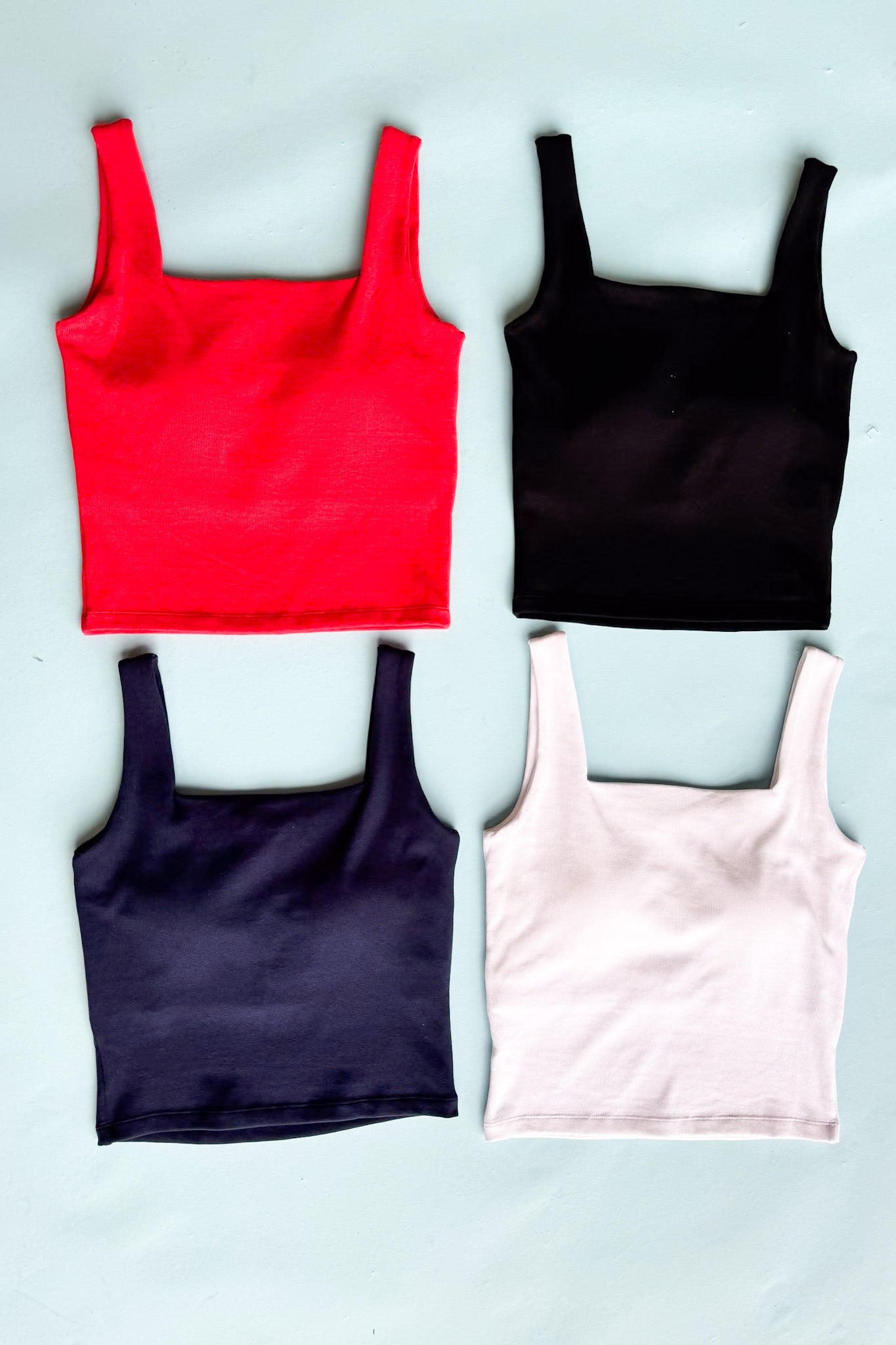Returning SILHOUETTE coming in HOT! Introducing the SSYS Red Ribbed Square Neck Padded Tank! She is made from our signature SSYS Cece fabric and in a square neck tank silhouette. Ladies, the BEST part, it has built in pads! So easy fitting, so comfortable and the perfect top to pair with our SSYS Daisy One Tier Maxi Skirt In Royal Scallop Floral, red boots and a bandana scarf for the most perfect AMERICANA ensemble! Don't hold back ladies, you will WANT in multiple colors!