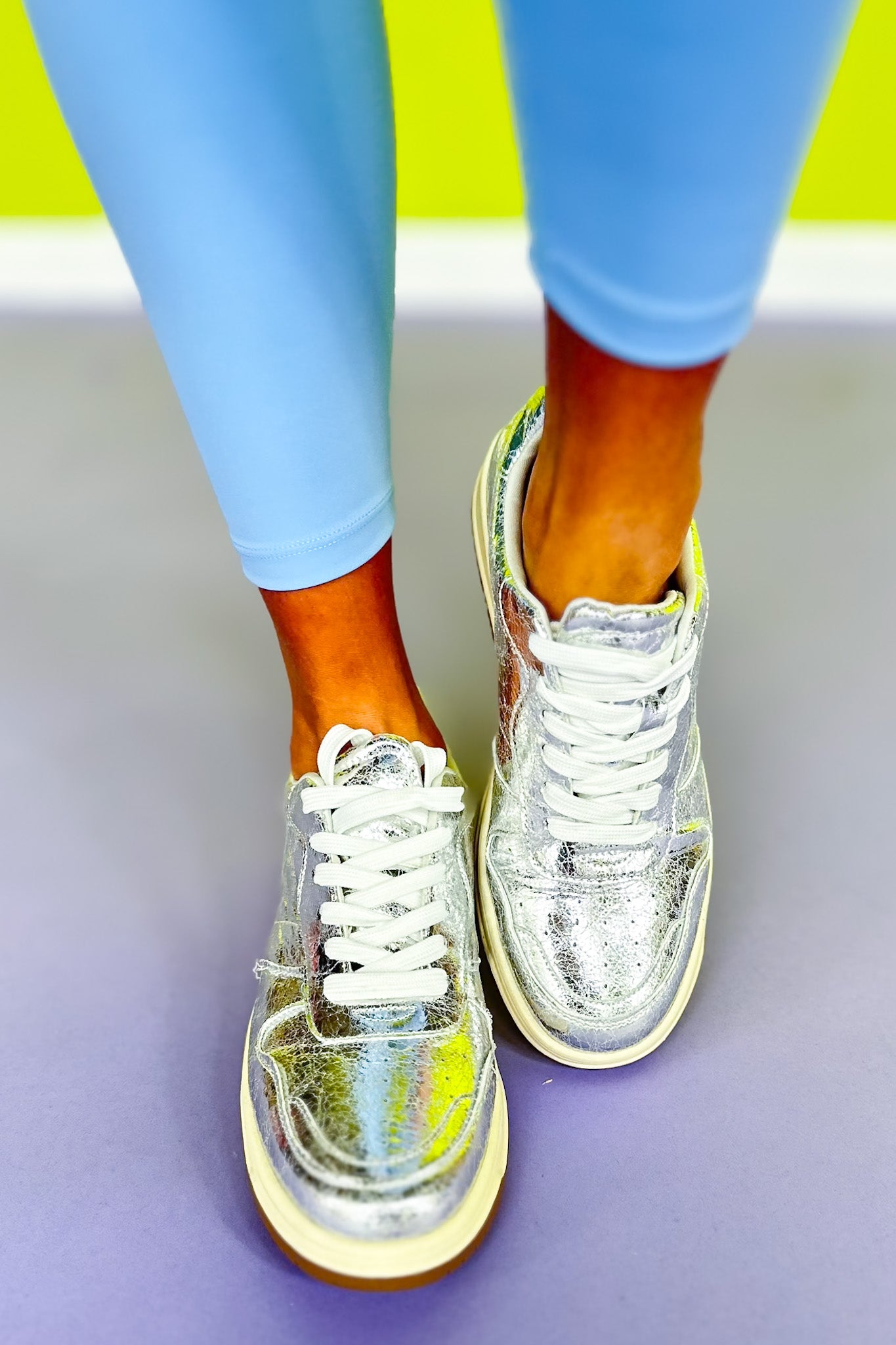 Get your shine on with these Silver Metallic Finish Sneakers! These eye-catching shoes don a chic and fun tone with their stylish metallic finish. Perfect for adding a touch of whimsy to any outfit, these sneakers are sure to make a statement!
