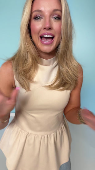 Elevated simplicity! The SSYS Alessia Peplum Ponte Top in Oatmeal is tailored to perfection in a structured ponte knit that smooths and holds its form beautifully. Designed with a sleek, sleeveless bodice and a sculpted peplum flare, this silhouette defines the waist while maintaining a refined, modern edge. The soft oatmeal hue adds warmth while remaining timeless and versatile. Pair it with tailored trousers or a coordinating ponte bottom for a look that feels confident, composed, and impeccably polished.
