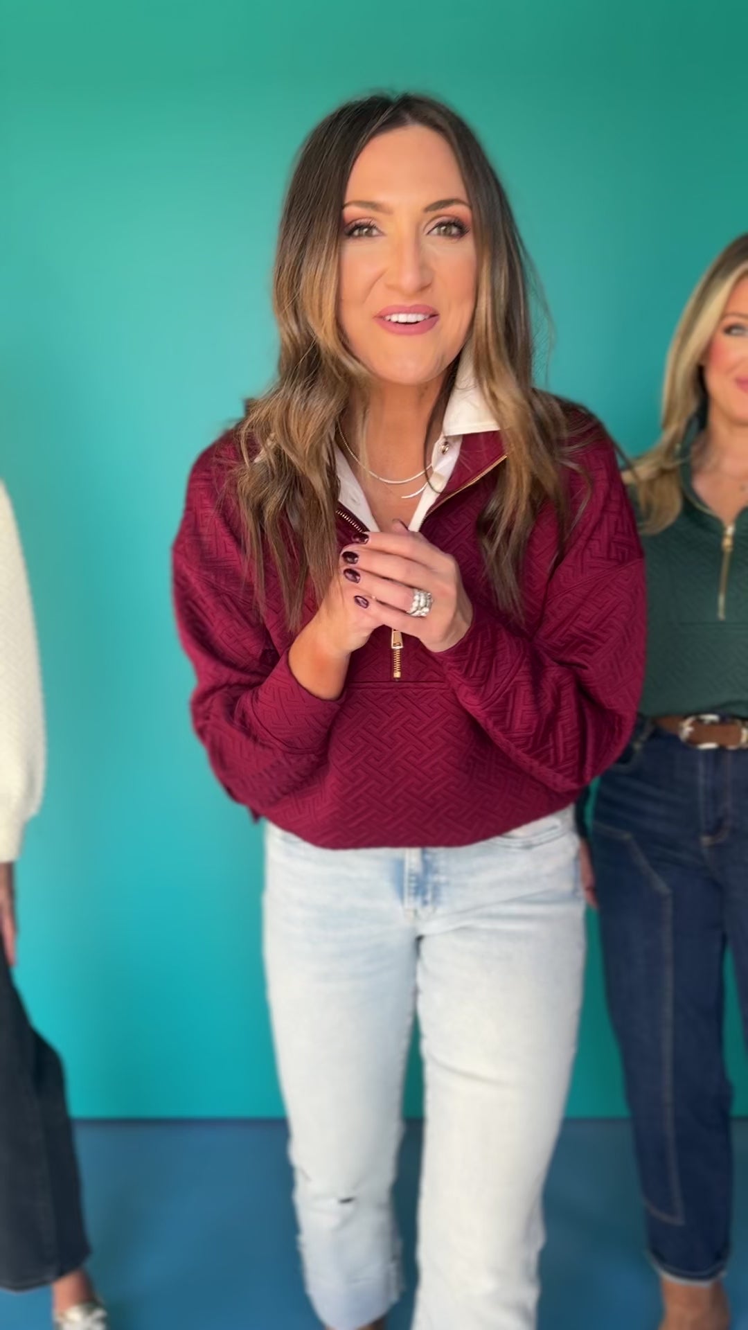 The SSYS Anna Pullover is one of our favorite pullovers to date and she is BACK and BETTER then EVER! With a gold quarter zipper, dropped shoulder, and signature textured greek key fabric, you will be sophisticated chic! Anna will be your easiest look for fall that is tried and true! This perfect piece can be worn alone or as a layering piece in the cooler months! Pair it with your go-to DENIM or favorite SSYS The Label ATHLEISURE. We can't wait to see all the ways you are planning to style this beauty!