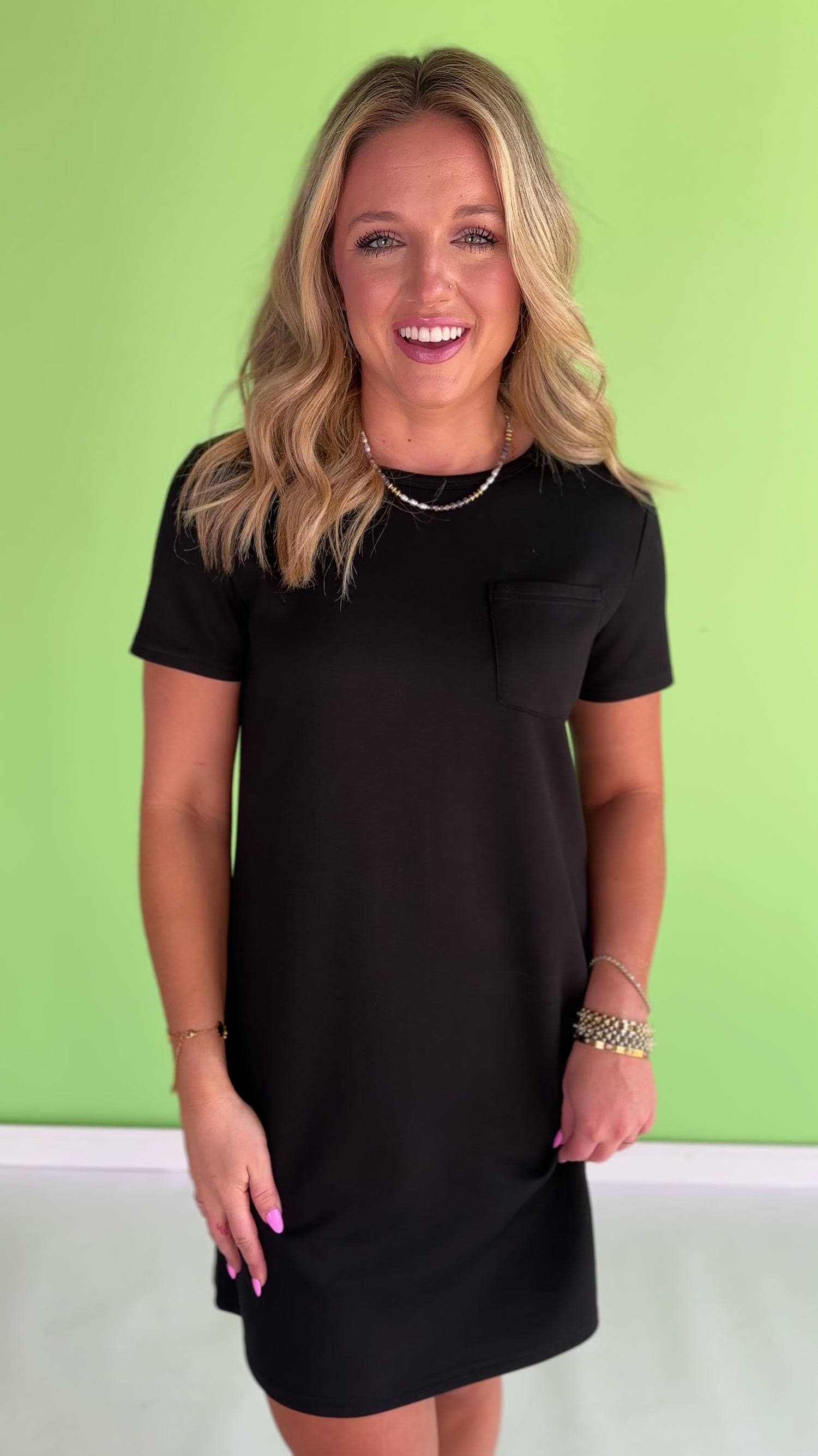 Meet the dress that does it ALL!! The SSYS Black Crew Neck Short Sleeve Air Dress is crafted in our signature Air fabric — the fabric of your dreams. Lightweight, breathable, and incredibly soft, it moves with you while maintaining a smooth, polished look all day long. The classic crew neckline and easy short sleeve silhouette make it effortlessly flattering and endlessly wearable.