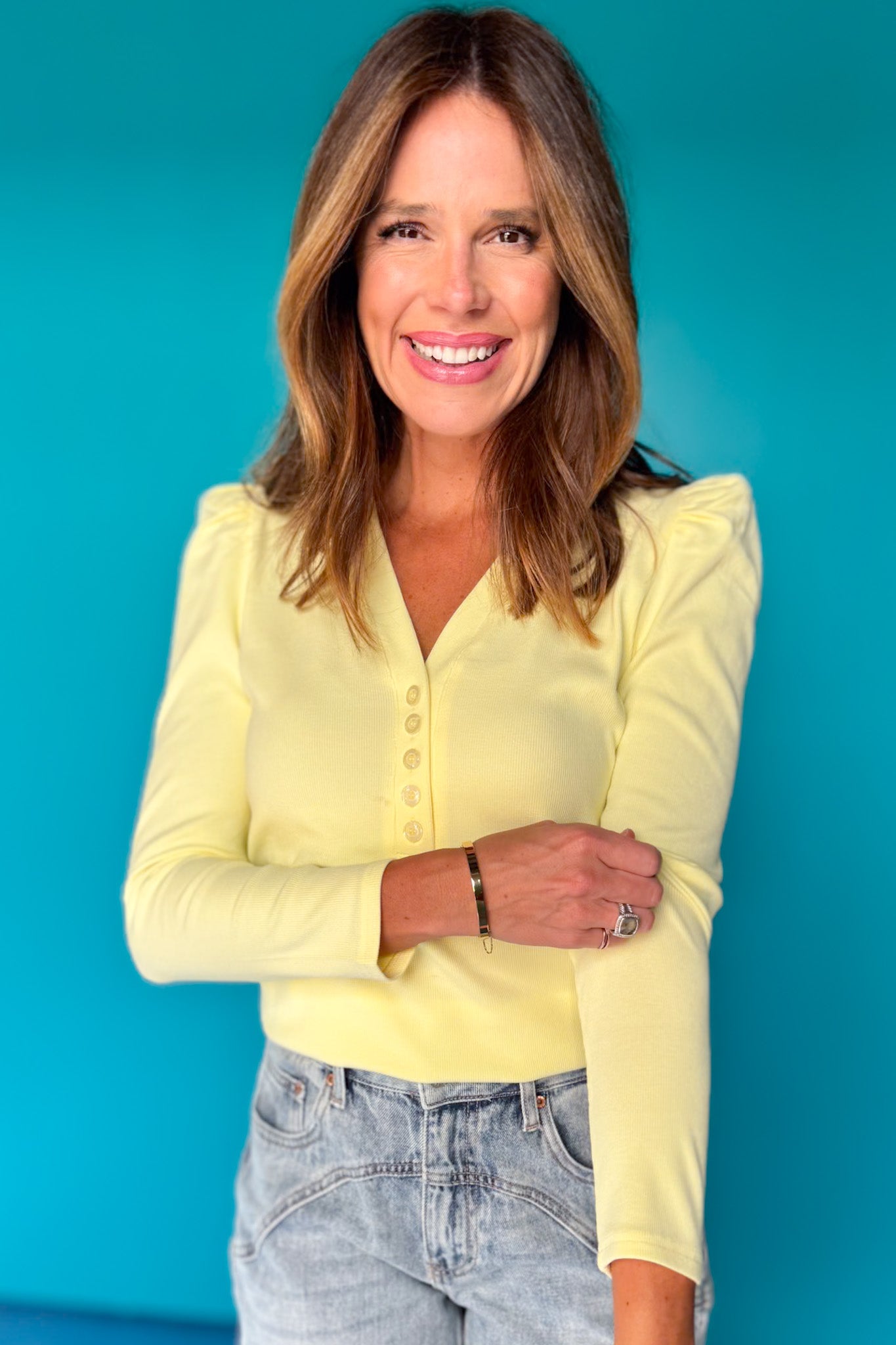 PREDICTED to be the one of the BEST SELLING SSYS The Label Tops once again!!! Introducing the SSYS The Cece Knit Puff Long Sleeve Top In Butter. Y'all SHE is SO feminine and SO cute BUT the quality is the show stopping element in this piece! Cece is form fitting towards the center that can be tucked in with high waisted DENIM or a skort. She is way more then your average t-shirt, can be dressed up or down and you will hands down want her in EVERY COLOR - OBSESSED!