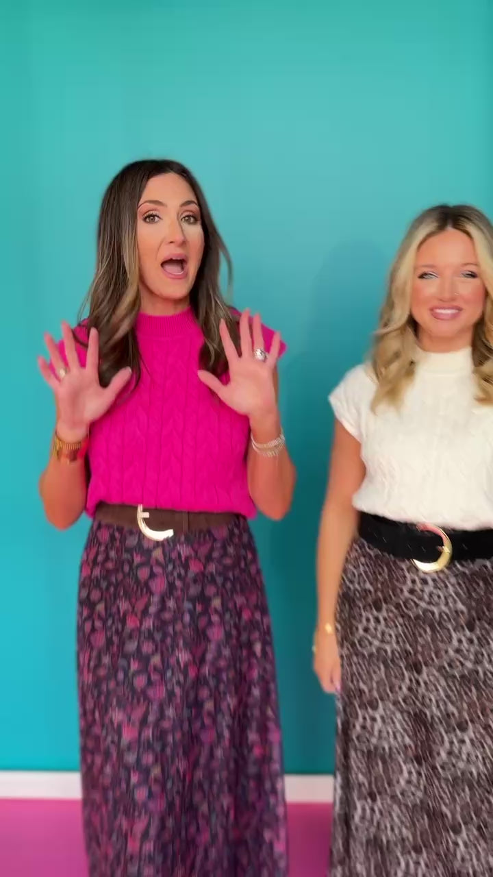 Add a pop of color to your cool-weather lineup with the SSYS Giselle Cable Knit Mock Neck Sweater In Ivory. Crafted in a soft cable knit with a modern mock neck, this soft ivory hue brings a cheerful twist to a timeless texture. The relaxed fit makes it perfect for layering, while the polished finish elevates your everyday denim, skirts, or tailored trousers. We love Giselle styled with our SSYS EMBER MESH TULLE MIDI SKIRT IN ANIMAL, so CHIC!