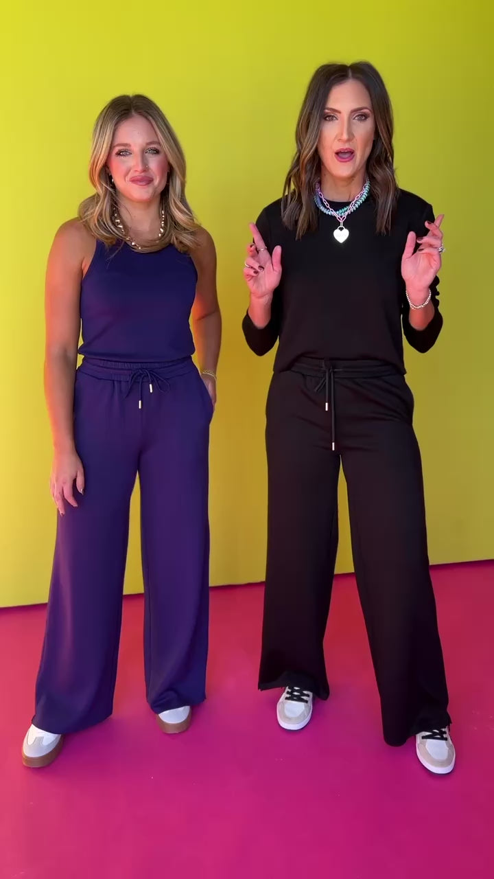 CUSTOMER FAVORITE is BACK and in a NEW lightweight air fabrication! Introducing the SSYS Lightweight Air Wide Leg Pants In Navy! These are a total DREAM! Truly a piece you can throw on and go and elevate or throw on after a busy day to be cozy. They are tailored to flatter your figure while being super comfortable and on trend! Style with any of our SSYS Signature Double Lined Racerback Tank Tops HERE and complete your ensemble by shopping the entire SSYS Pink Friday Basics Collection HERE to find the perfection layering piece! HINT - the SSYS Maya Air Cardigan or SSYS Ainsley Air Pullover would be so chic and perfect!
